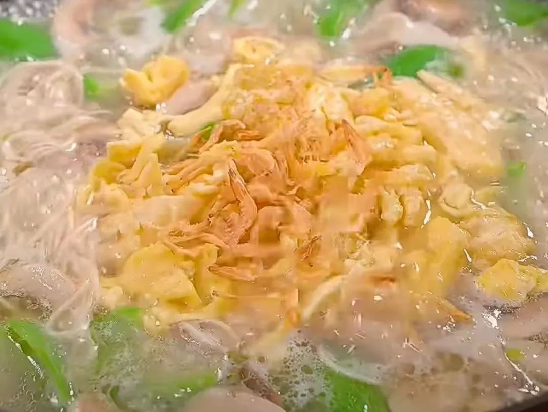 小米杂粮饭、盐水虾、炒三丝、鲜蔬芙蓉汤