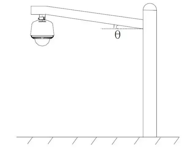 安装立杆采用L 型杆时,推荐横杆有一定的上扬角度,防止因横杆密封性不好,雨水倒灌至球机顶部;
