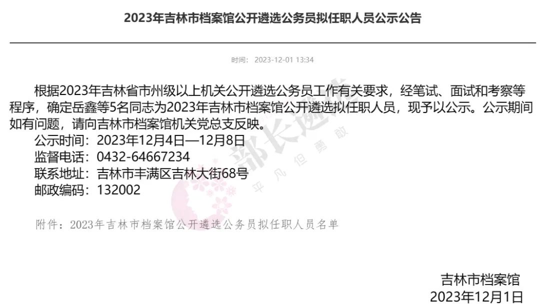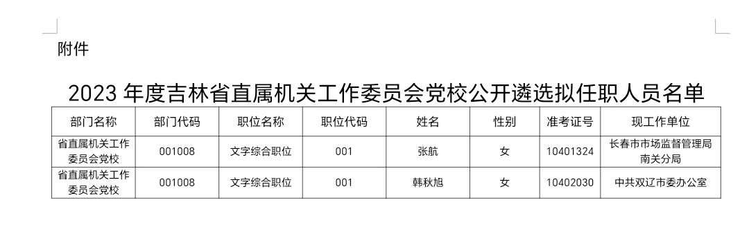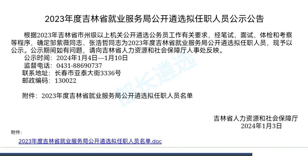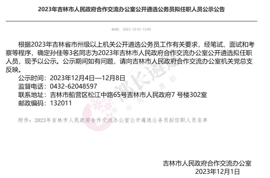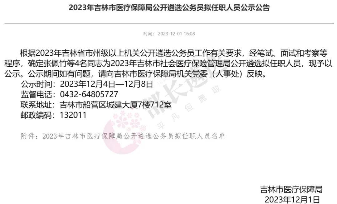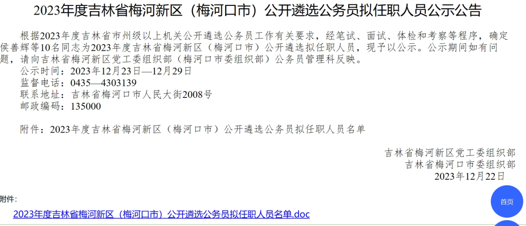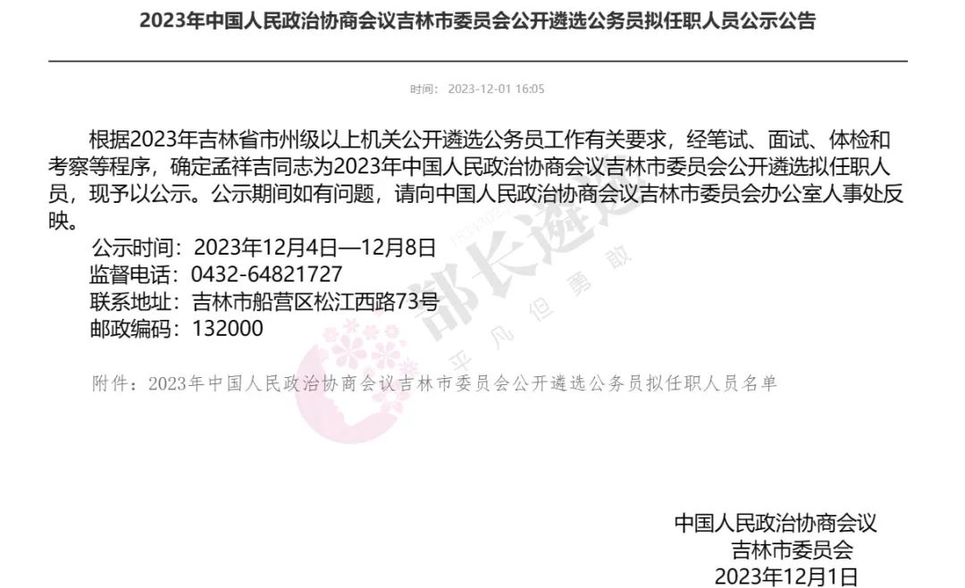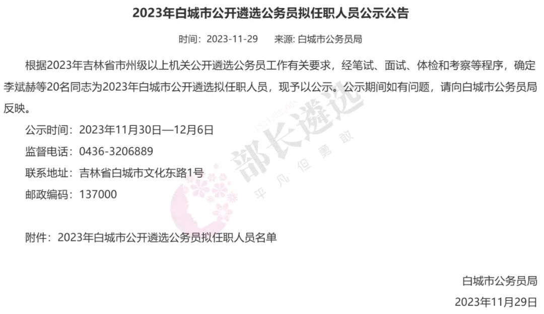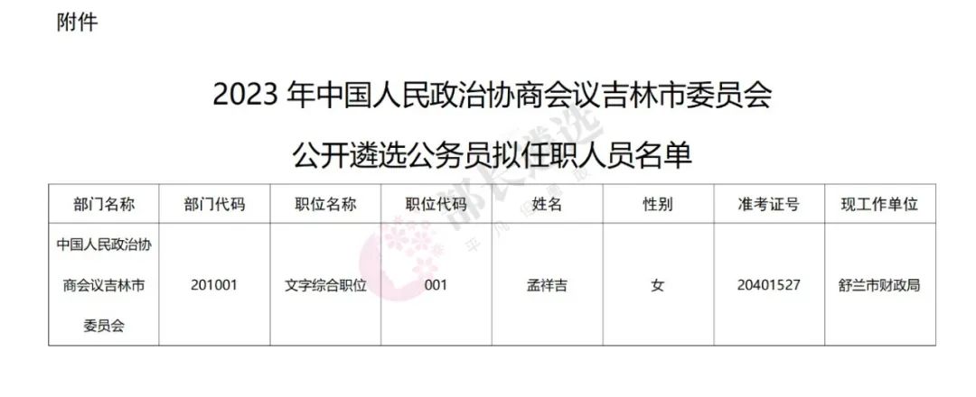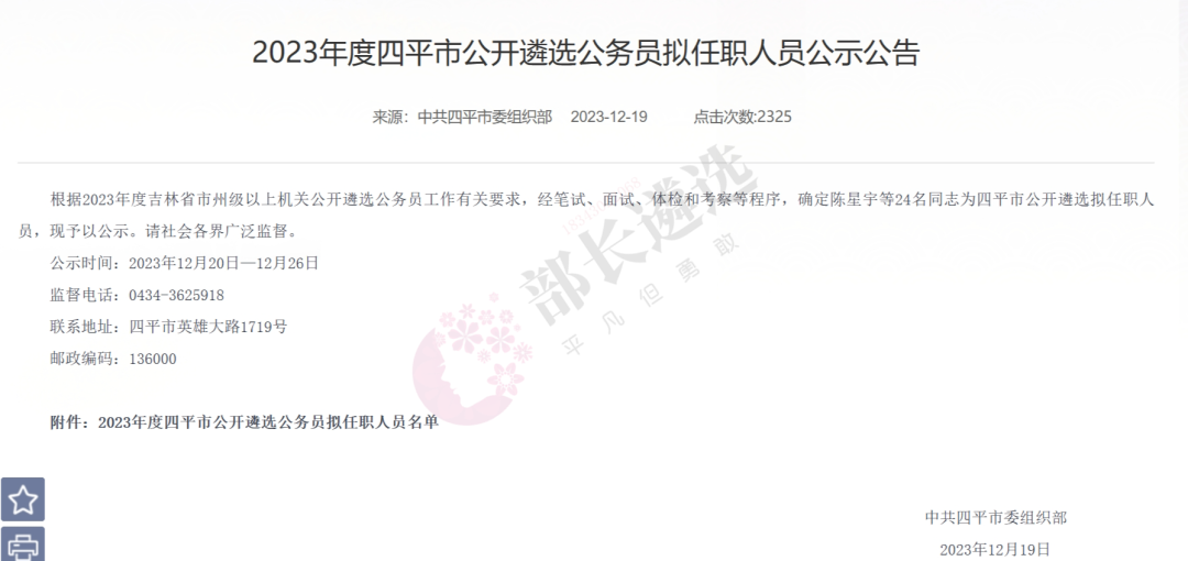 2023年四平市公务员遴选公示