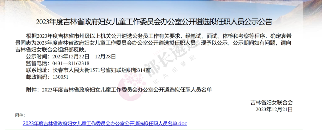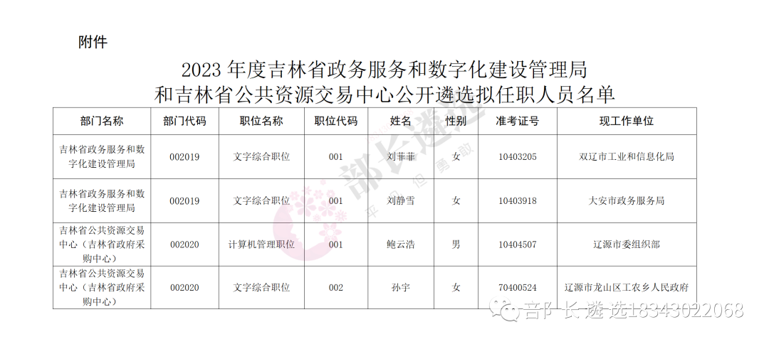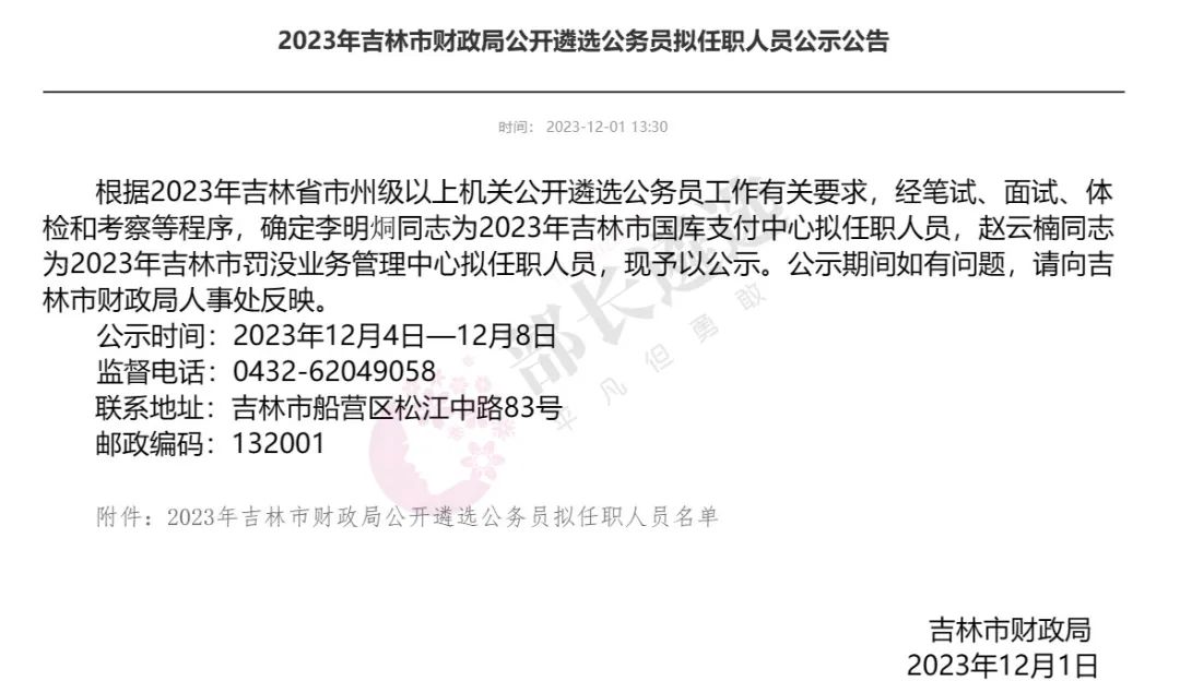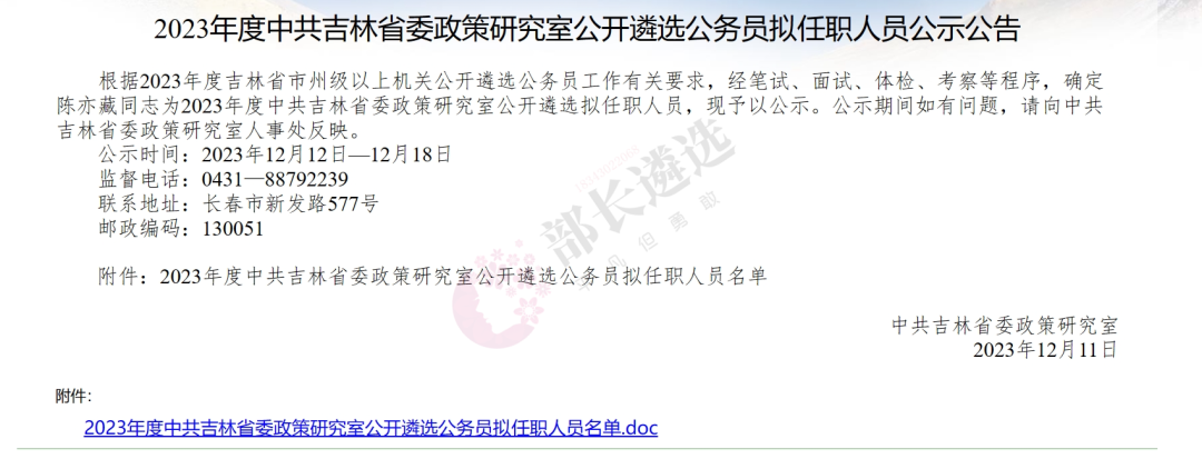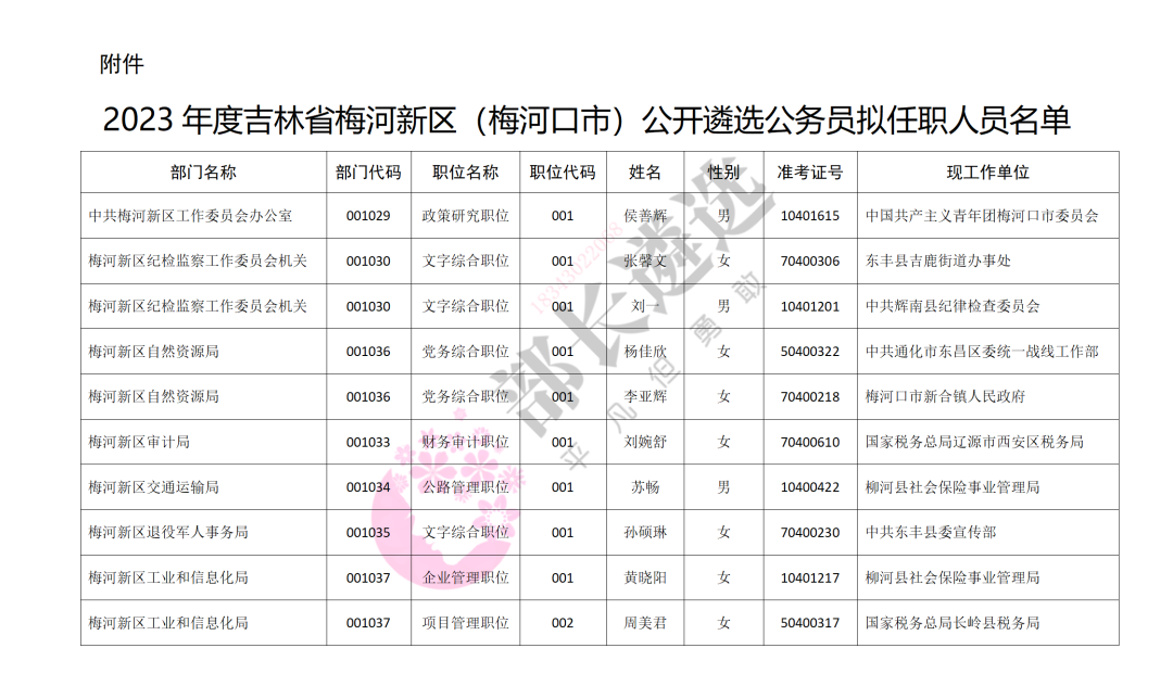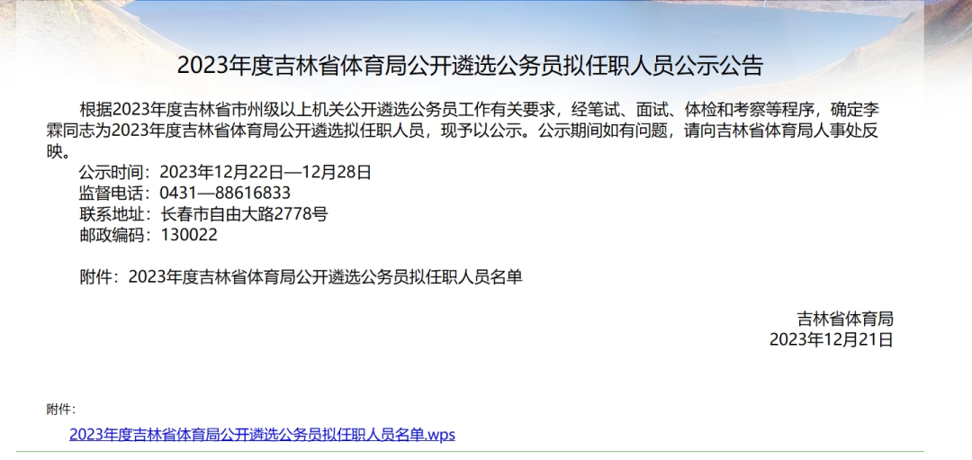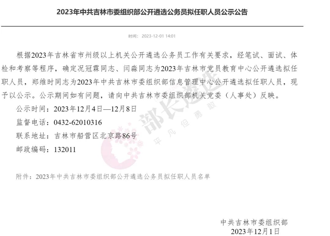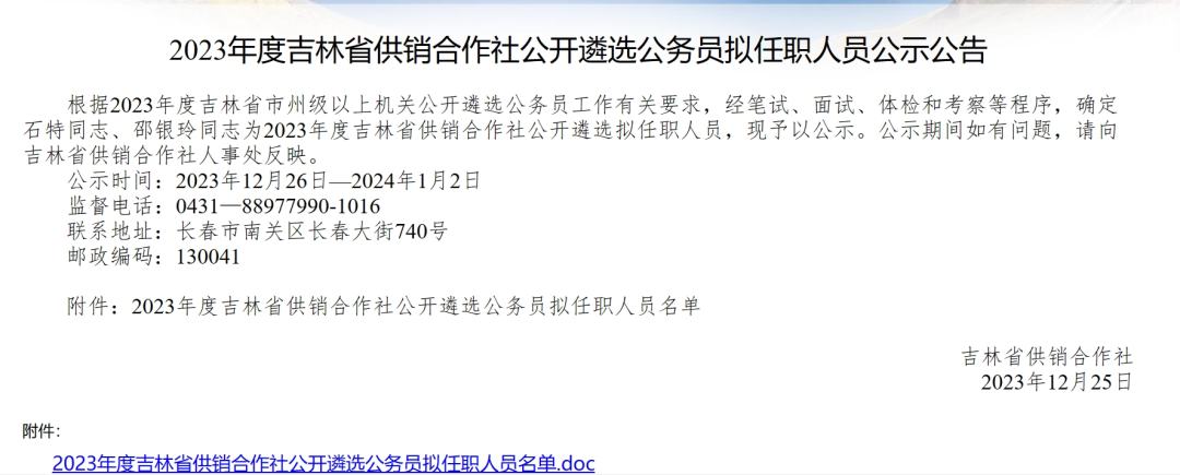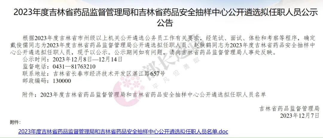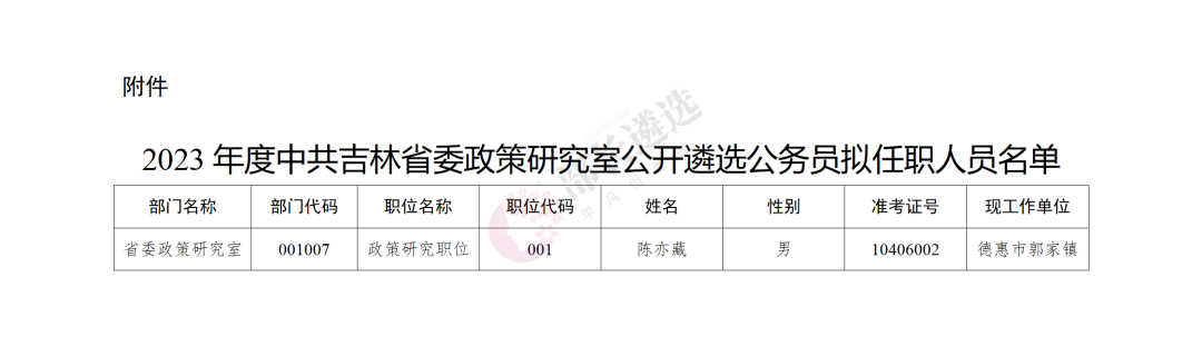 2023年四平市公务员遴选公示