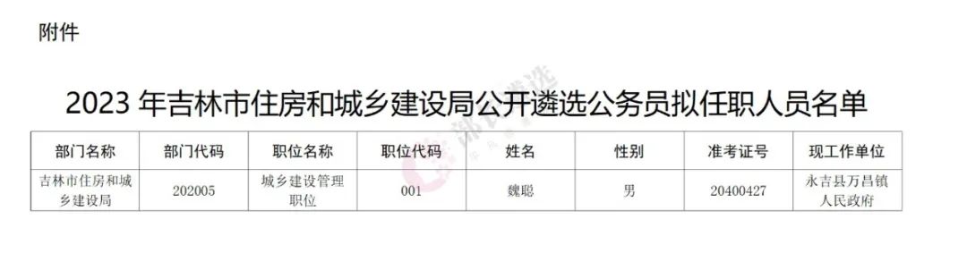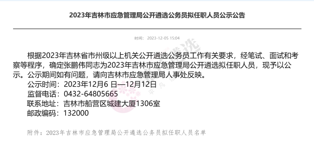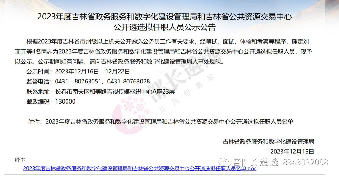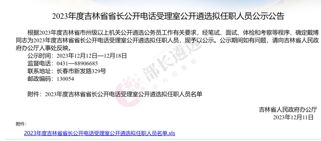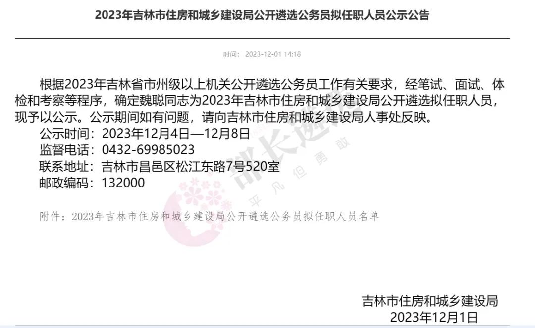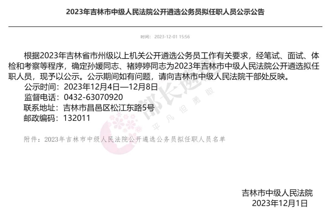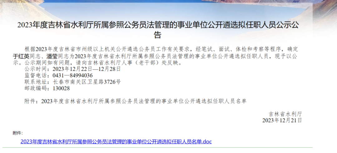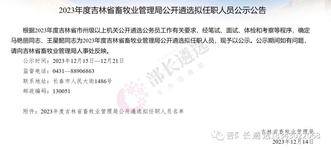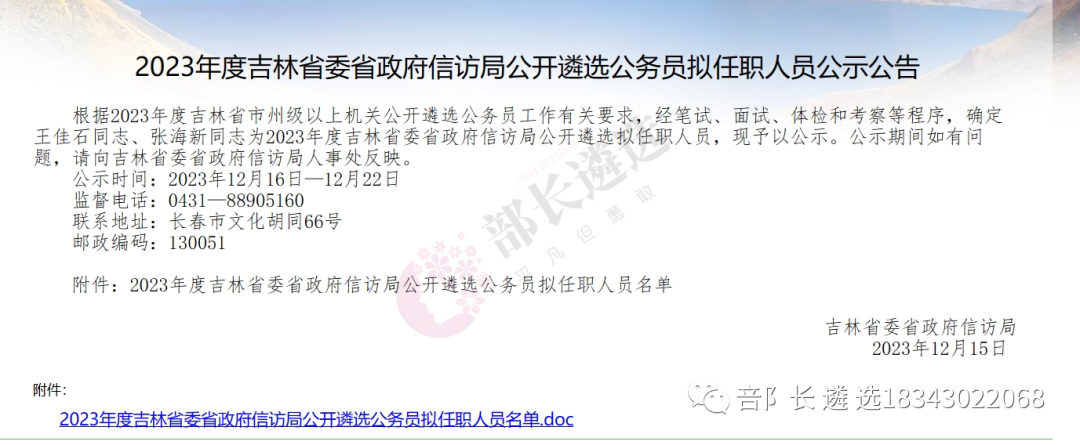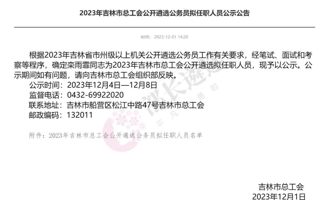 2023年四平市公务员遴选公示