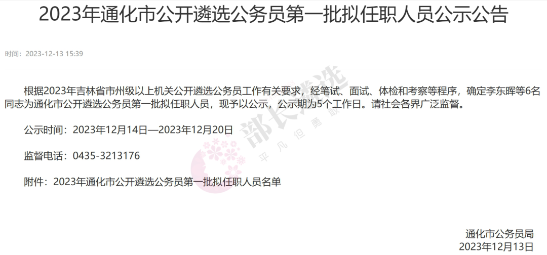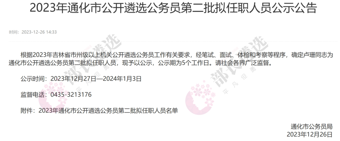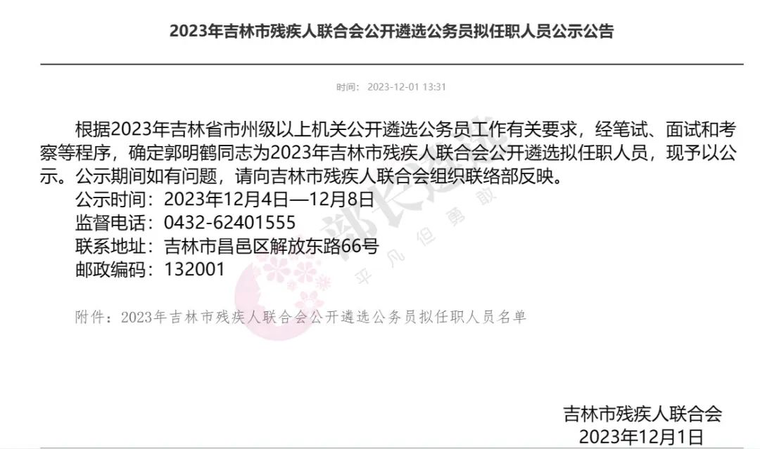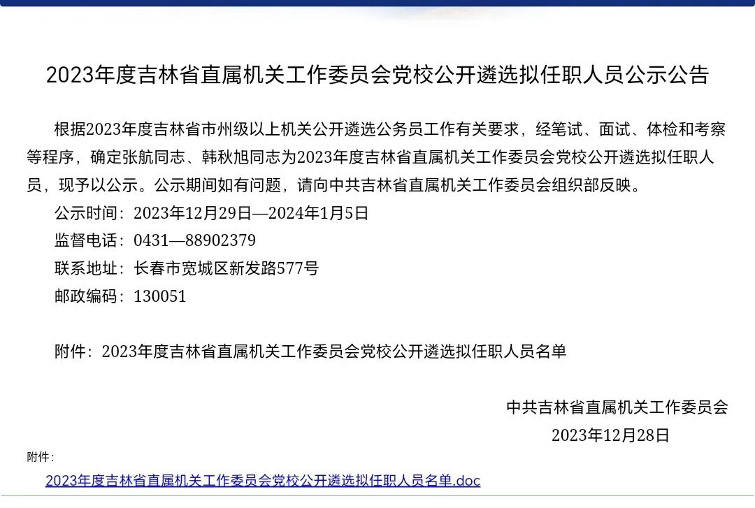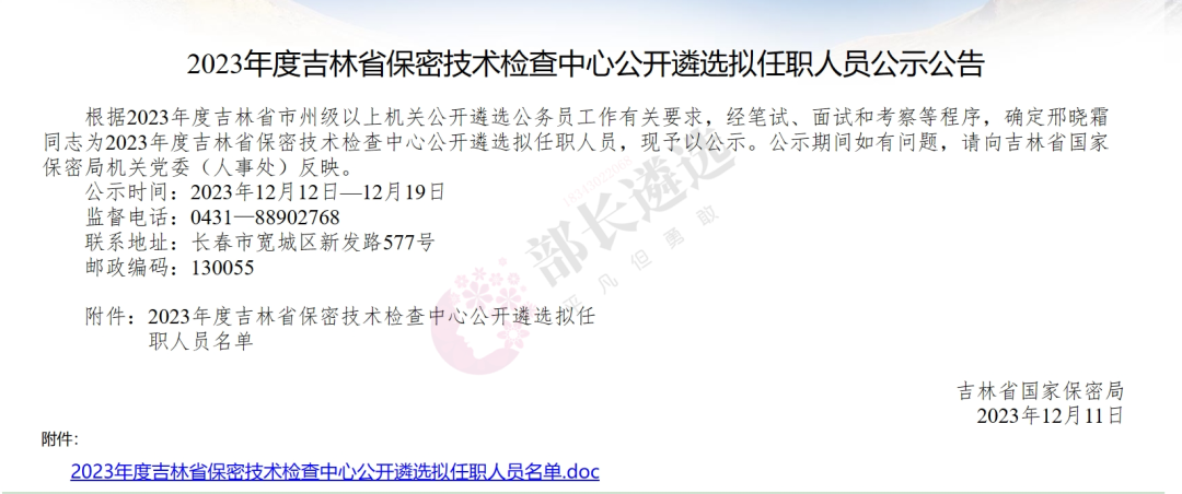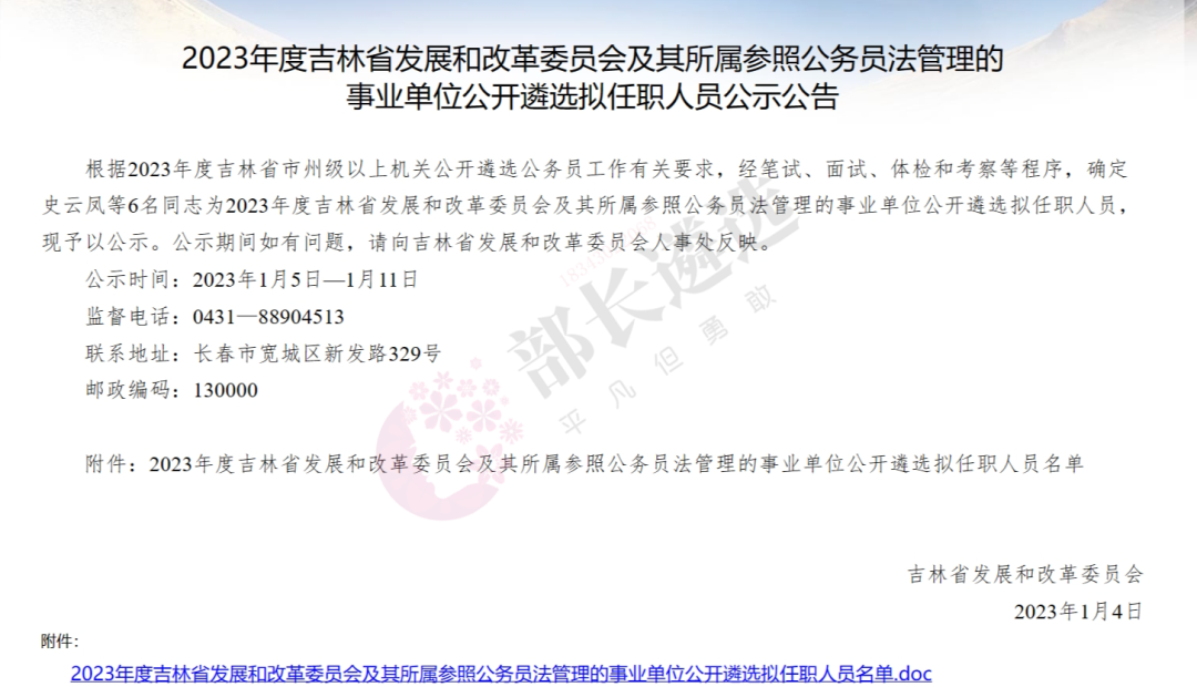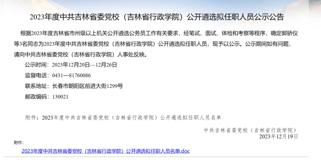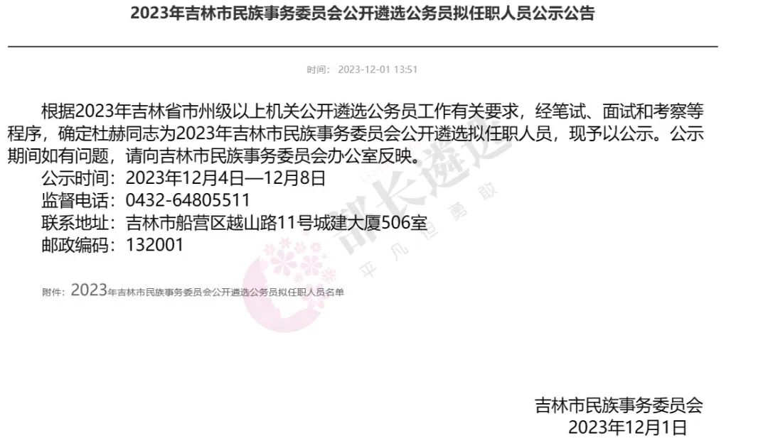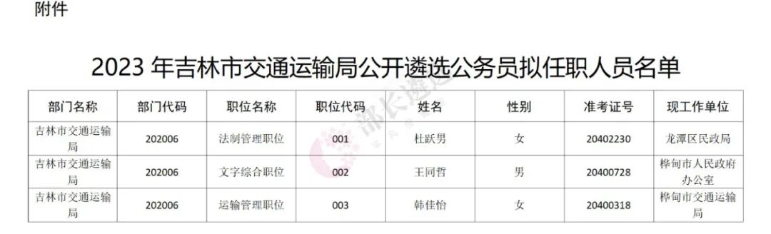 2023年四平市公务员遴选公示