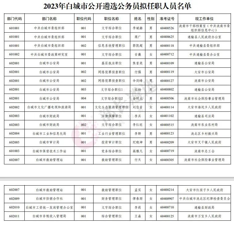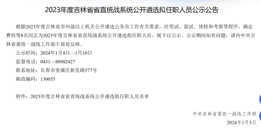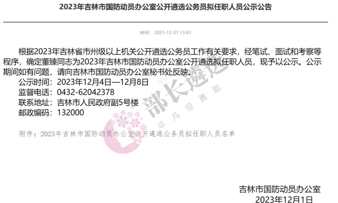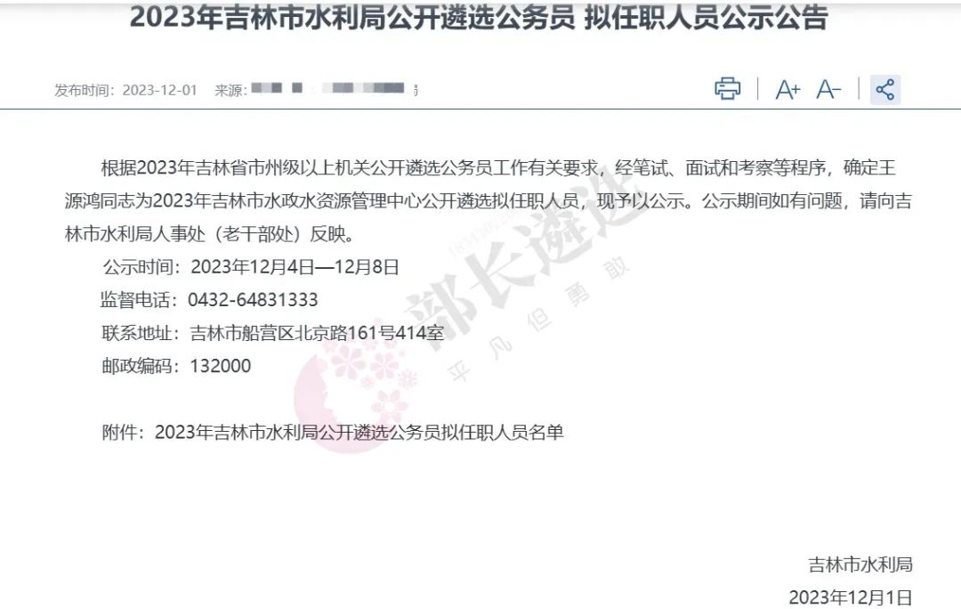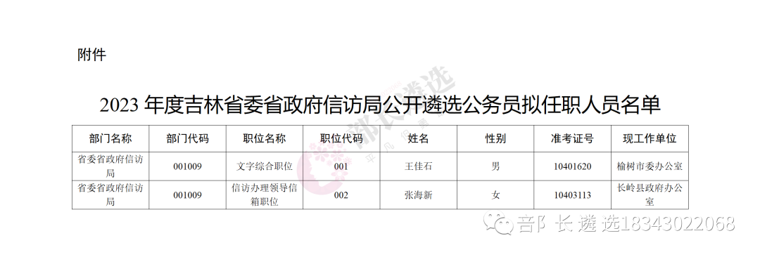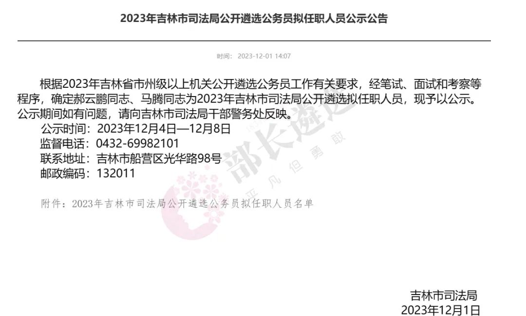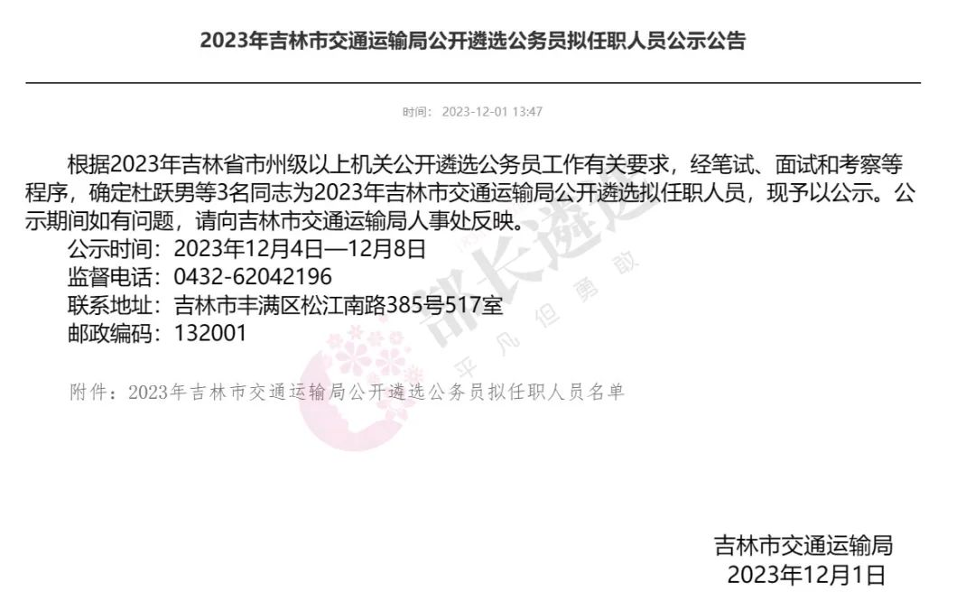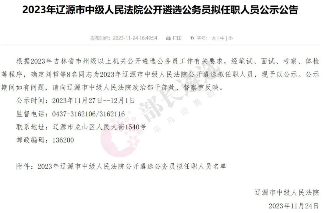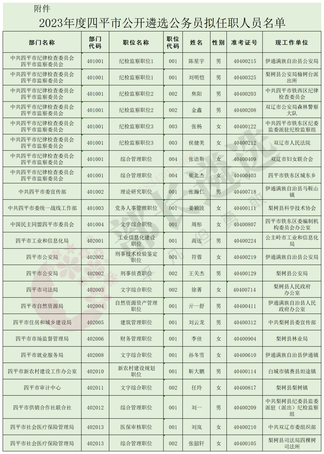 2023年四平市公务员遴选公示