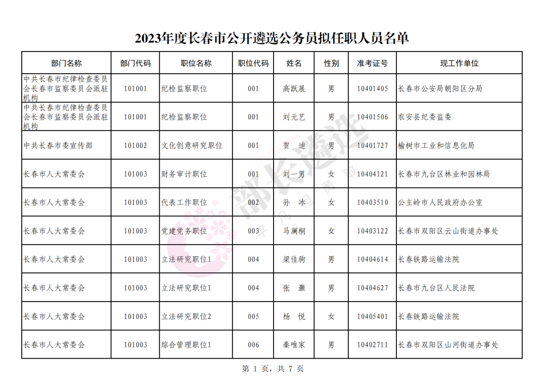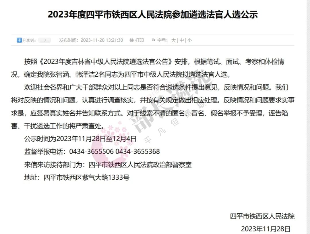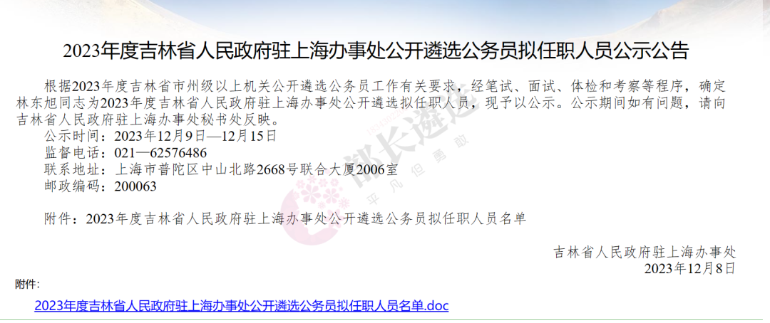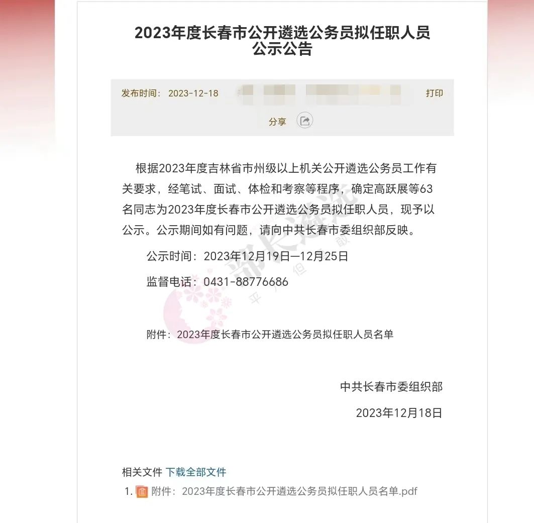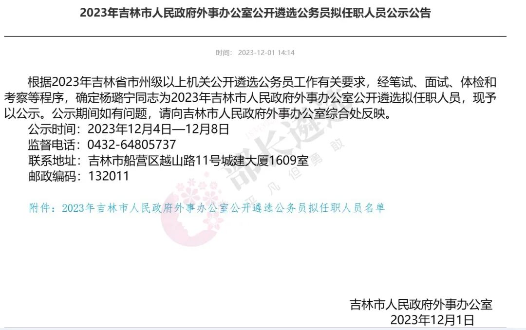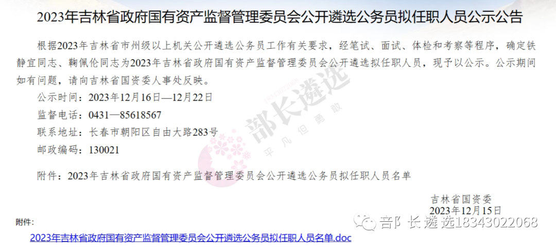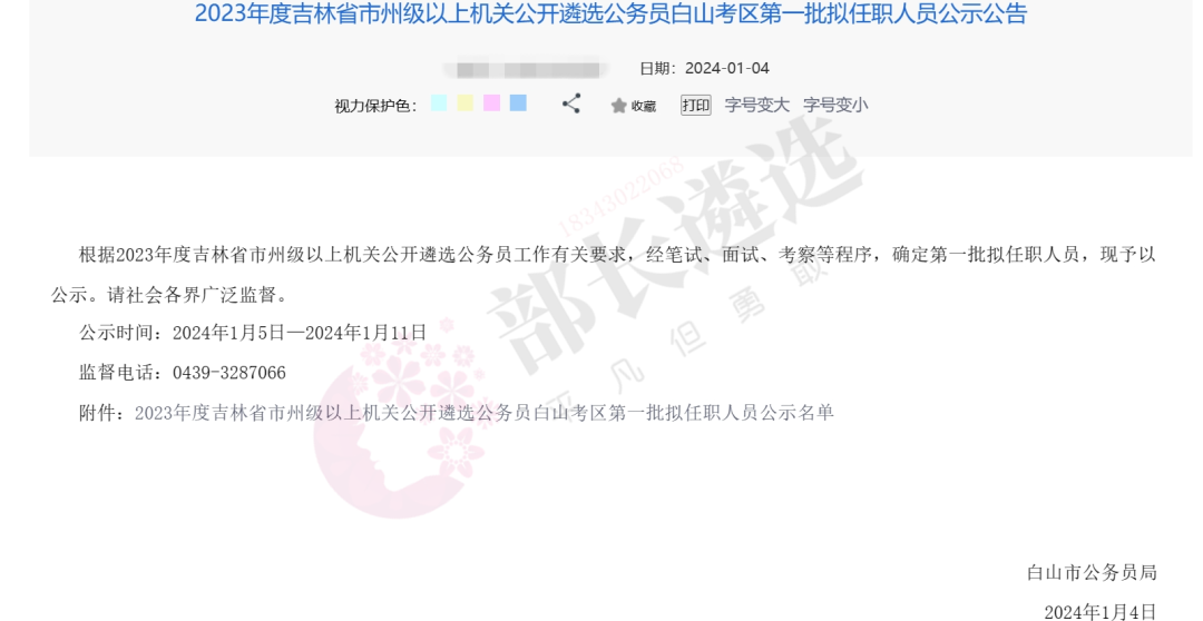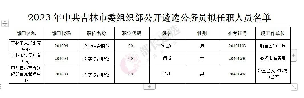 2023年四平市公务员遴选公示