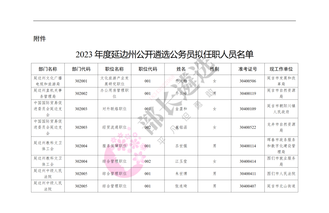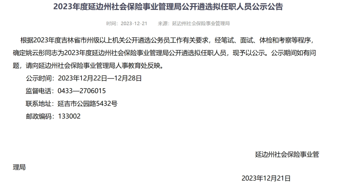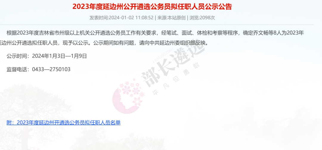 2023年延边州公务员遴选公示