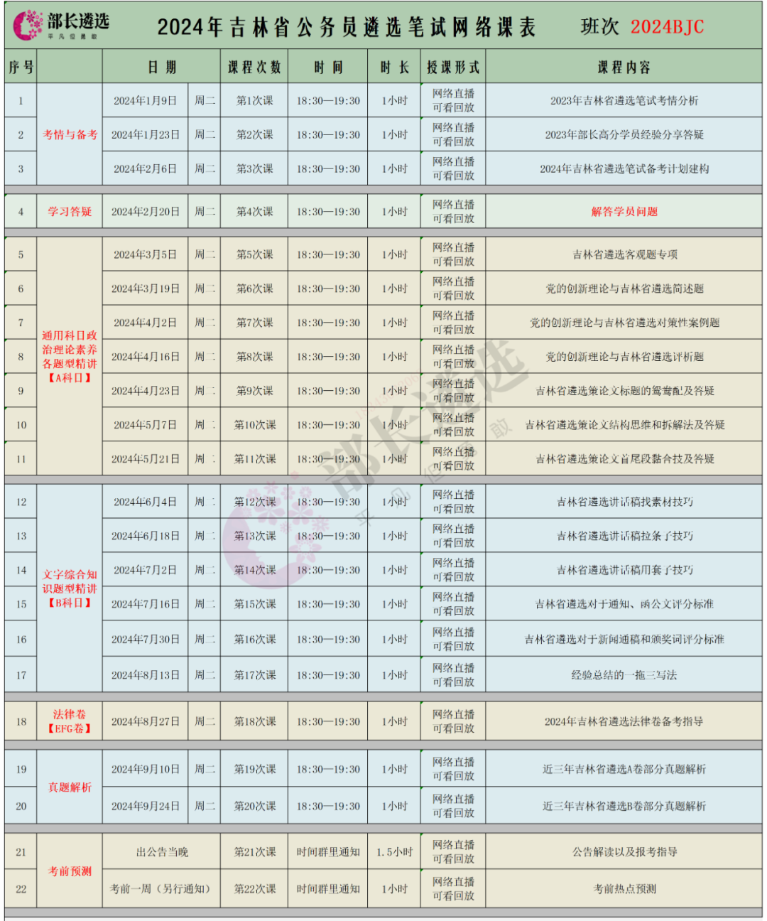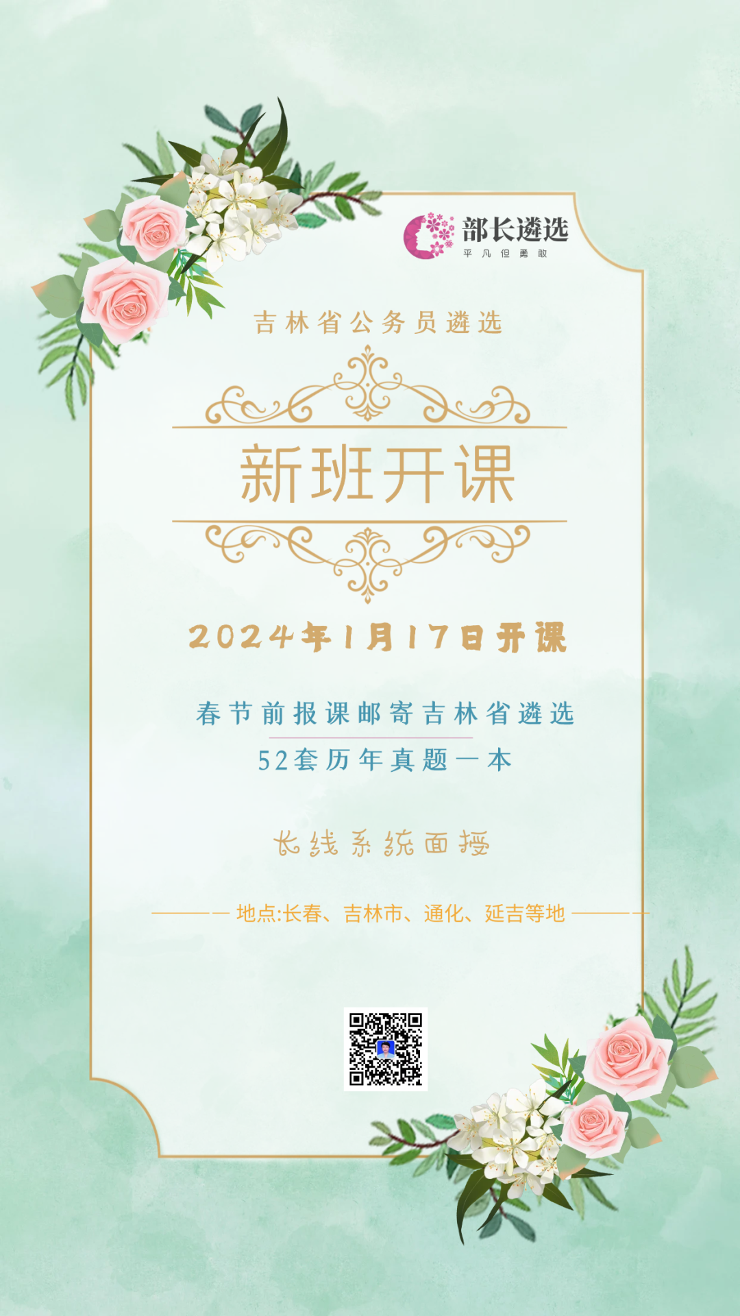 2024年吉林省公务员遴选笔试课程将于明天1月17日18:30第一次直播,(吉林市、通化市、白城、延边等地现场面授)。按照报名顺序排座位,春节前报名的同学已经邮寄真题教材一本,详情咨询页面最底部部长老师微信。