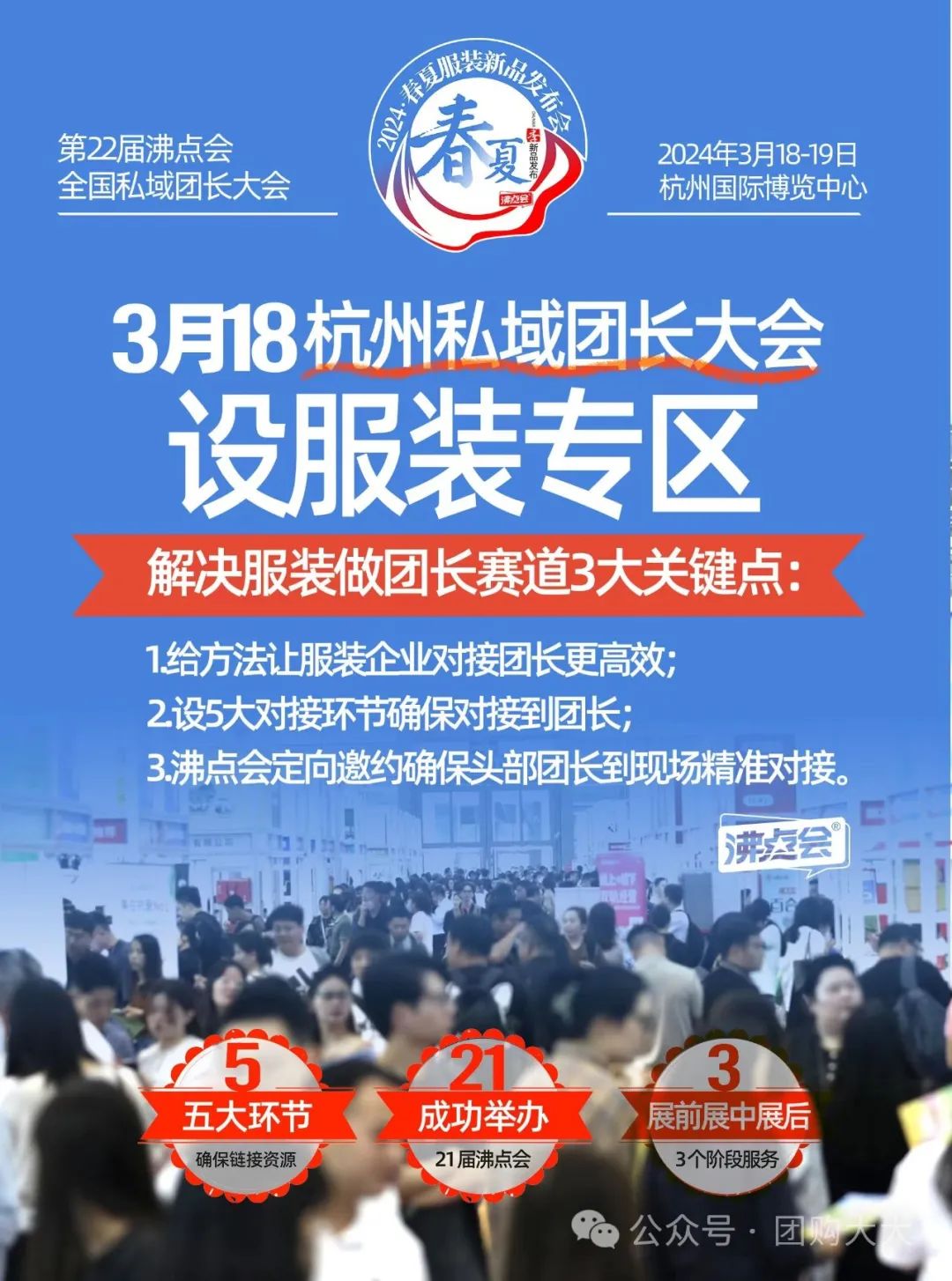 沸点会,作为专业的私域团长大会,成功举办了22届沸点会,现在又将在3月18杭州沸点会暨杭州私域团长大会期间举办2024杭州春夏服装新品发布会,不仅给服装类生产企业供应链观众带来了惊喜,,也让超多私域团长社群团购平台发自内心的感谢,更给整个服装行业带来了不小的震撼。