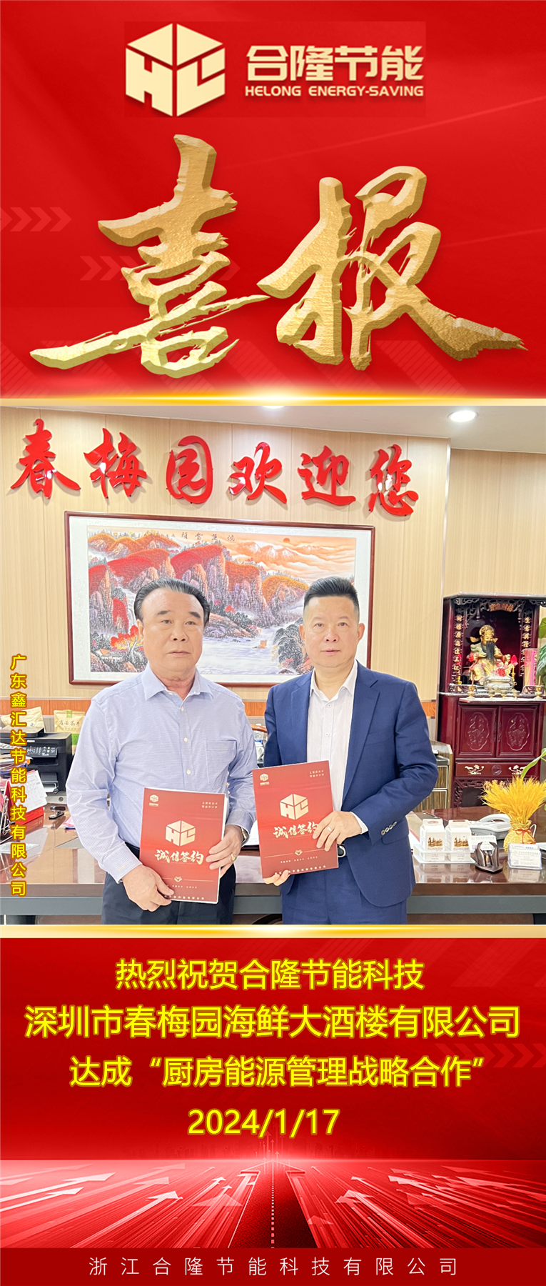 恭喜合隆节能成功助力两家酒店,为餐饮企业安全生产保驾护航HLJNEMC------(2024-01-17)