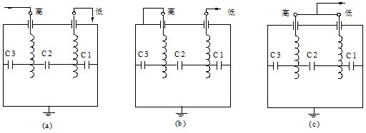 (a)高压-低压及地 (b)低压-高压及地 (c)(高压+低压)-地