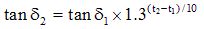 测量温度以顶层油温为准,尽量使每次测量的温度相近。测量应尽量在油温低于50℃下进行,不同温度下(t1、t2)的tanδ值(tanδ1、tanδ2)可按如下工程简化公式进行换算: