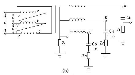 (a)高压-中、低压及地 (b)中压-高、低压及地 (c)低压-高、中压及地