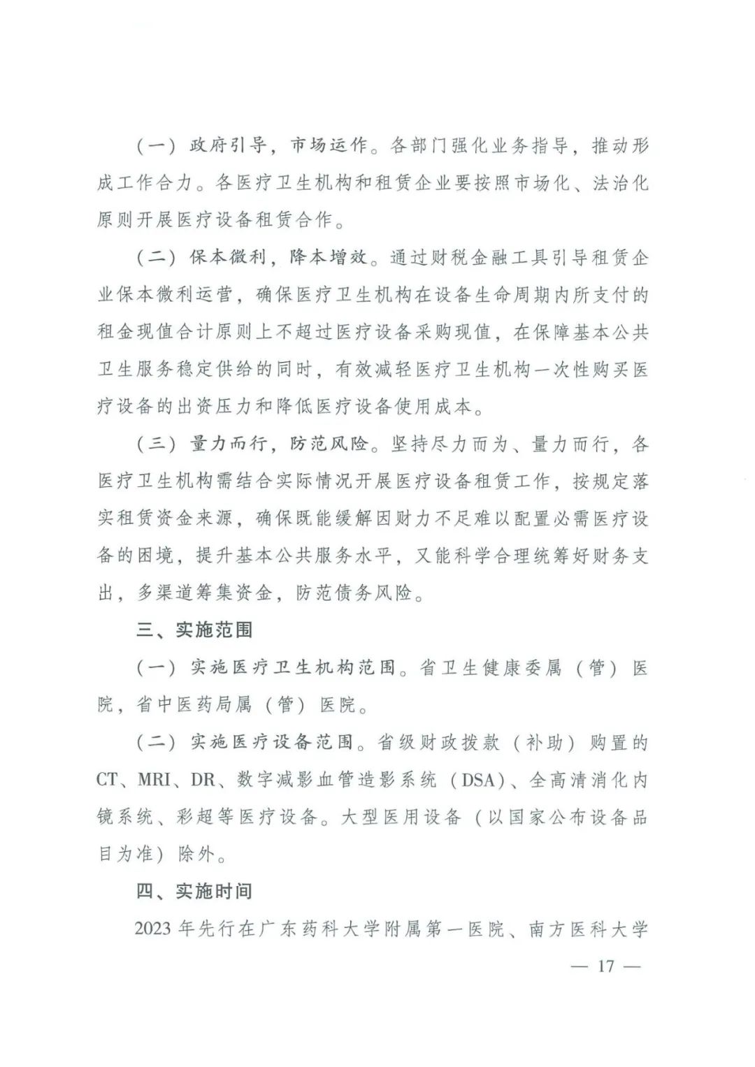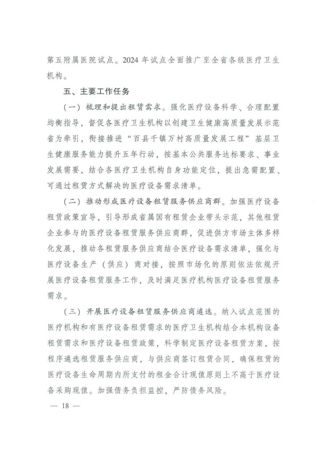 这份文件明确为加快先进设备购置、缓解财政一次性支出压力,提升相关医疗服务能力并补齐短板,开展在医疗机构相关医疗设备租赁试点。