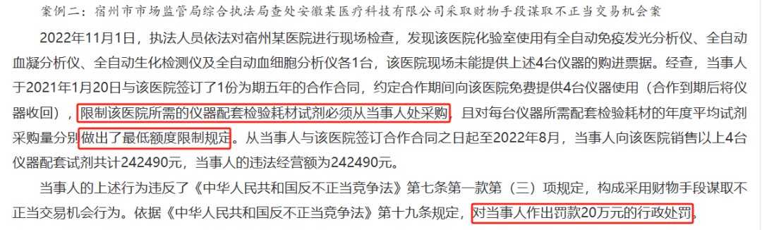 事实上,因“检验仪器投放绑定耗材销售”导致检验科被处罚的案例近来年屡见不鲜。
