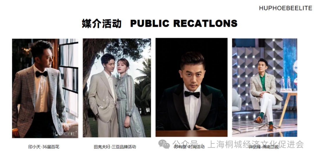 HUPHOEBE(菲比·胡)私人定制涵盖:西装、夹克、大衣、风衣、职业装、时装、衬衫、polo衫、鞋履、配饰等。 HUPHOEBEELITE(菲比胡·精英)成衣品牌线:轻奢时尚女装为核心线上新媒体,线下买手店为主要渠道开拓。
