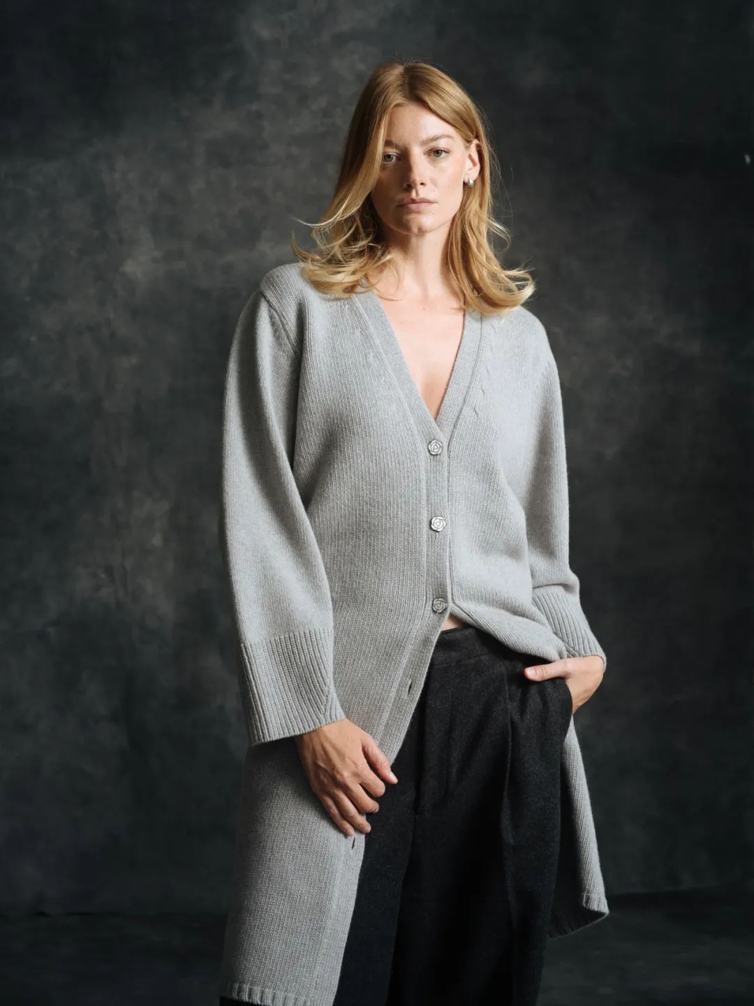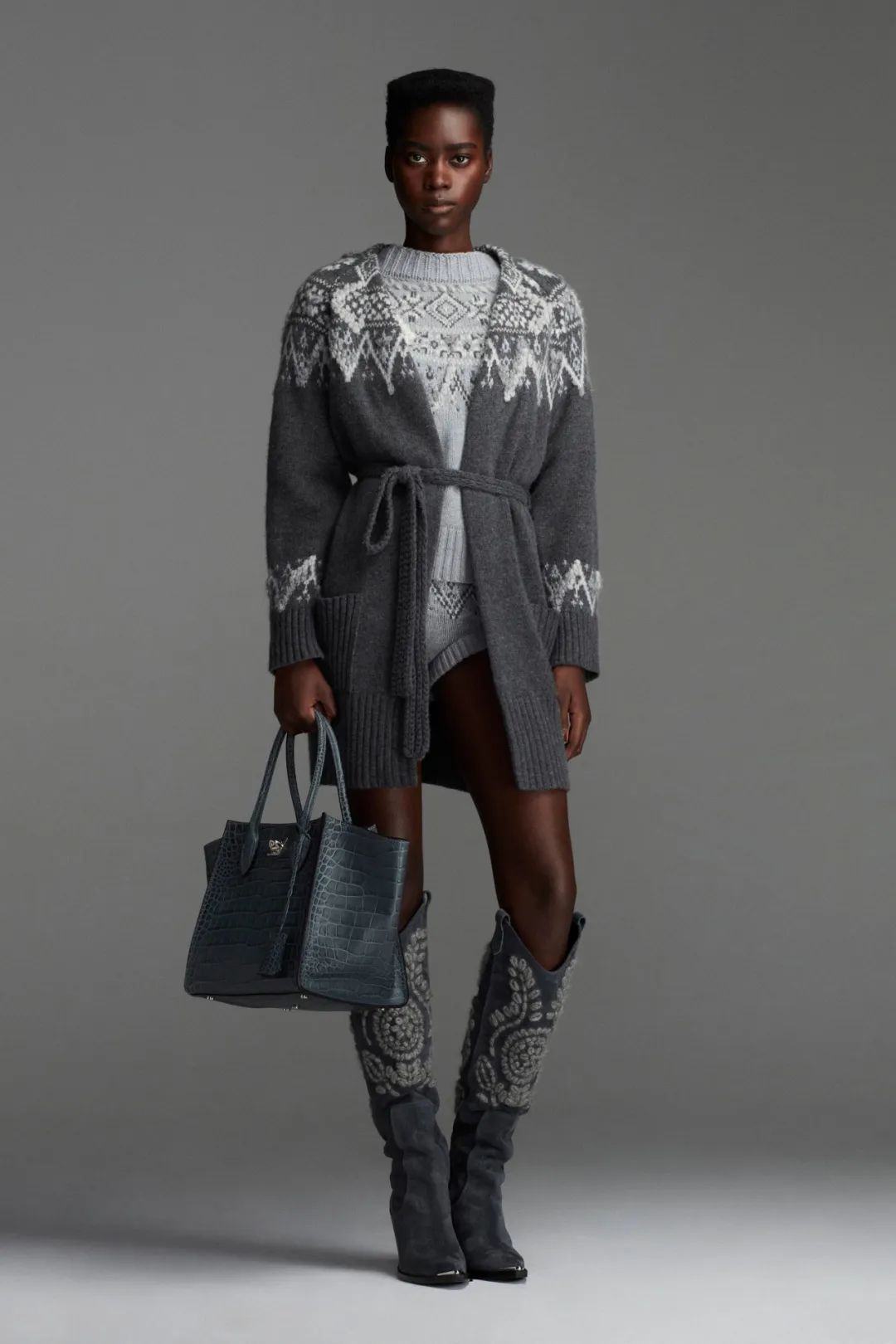 高级灰是一种在色彩关系关系的对比中,具有柔和,平静,稳重,具有色彩倾向但自然不突兀,对比和谐却又和而不同的色彩系列。不同于鲜艳的色彩会带给人强烈的情绪感,高级灰色彩纯度低的特点更加增加了耐人寻味的优势,给人一个丰富、广阔的空间。不论是冰山灰系列针织,卡其灰系列针织,还是暗灰色系列针织,与针织搭配都有着恰如其分的质感表达。下面小编带大家领略这三种各具魅力的高级灰系列针织,感受不一样的针织设计。