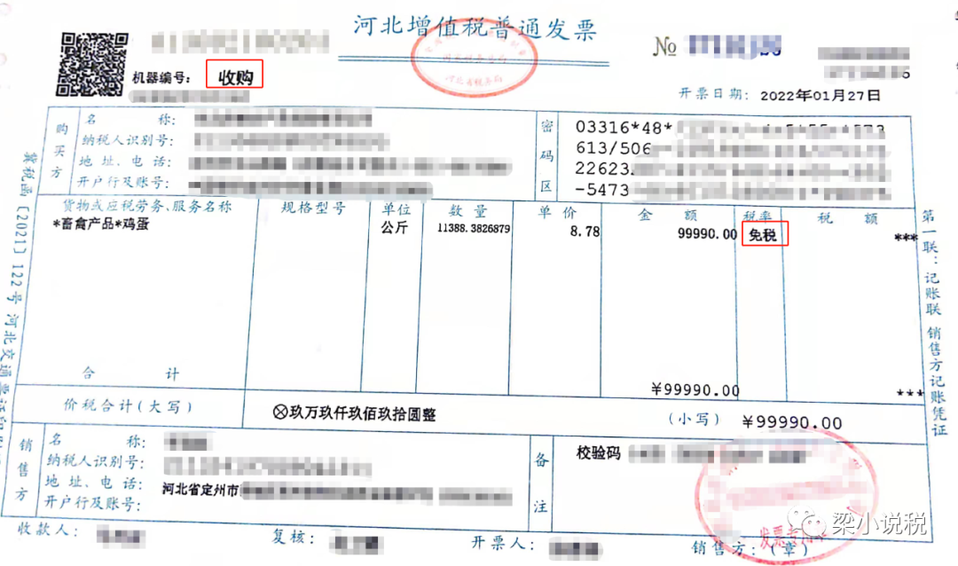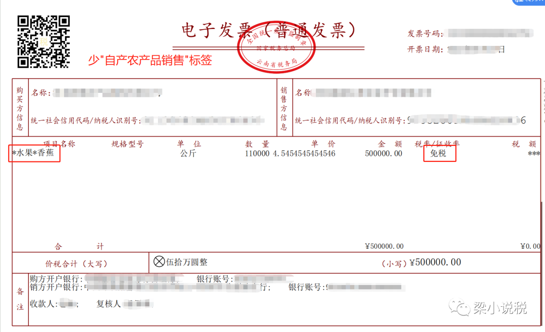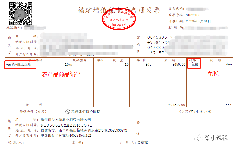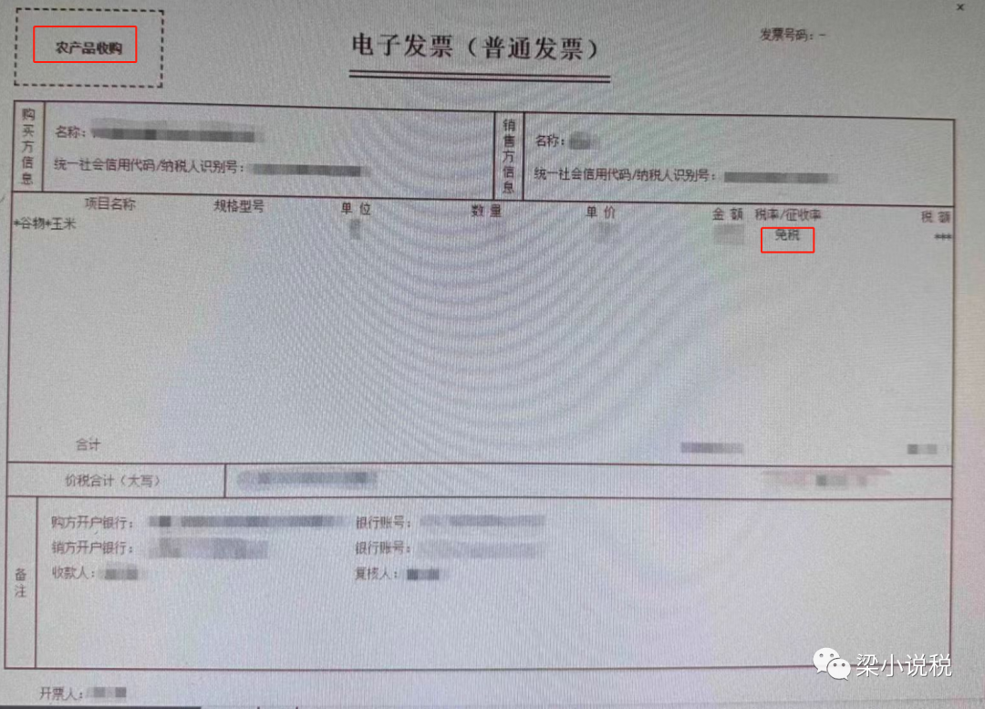 ③商品和服务税收分类编码必须选择农产品编码,税率开具"免税"。