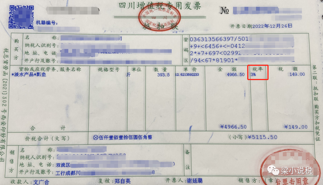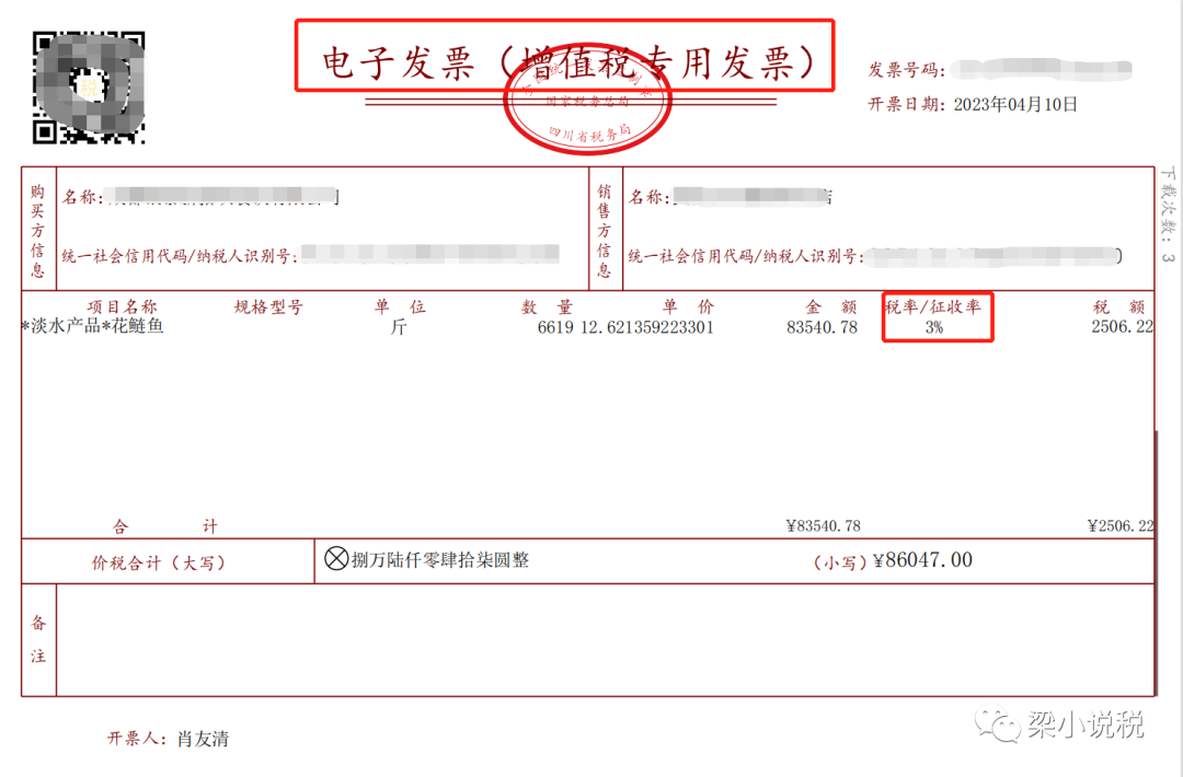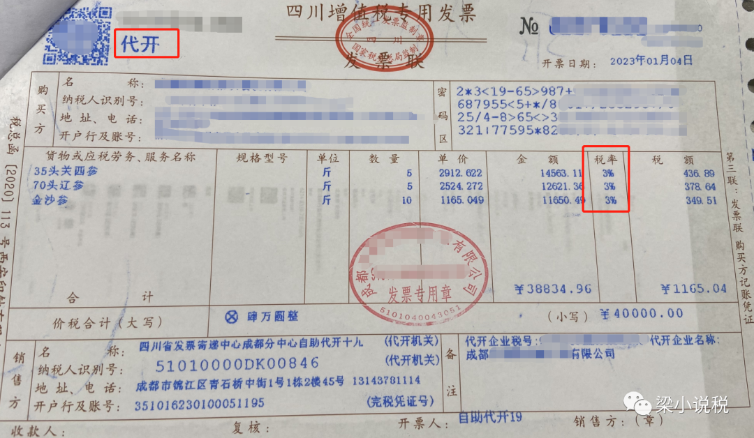 3.小规模纳税人代开或者自开的3%农产品专票-必须是3%,1%无法计算抵扣