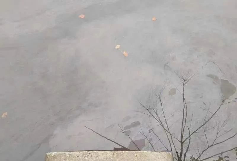 现场发现,在厂房南侧有一条河,河道名称:七支河,河边有一条管道一直往外排污水,排出的水是粉红色的。河面上有大量的油花飘着,旁边指示牌上写的很清楚,禁止在饮用水水源保护区内设置排污口。