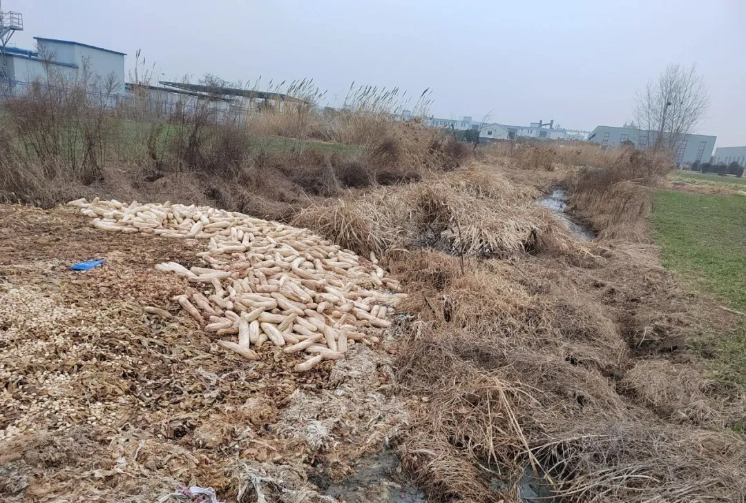 网友曝料:盐龙街道一食品公司周边被指污染严重,河水臭气冲爆料:标识为江苏四海香食品科技有限公司厂区后方发现堆放大量的腐蚀烂菜,且厂房后面以及厂房南侧农田周边弥漫着臭气冲天的污水。
