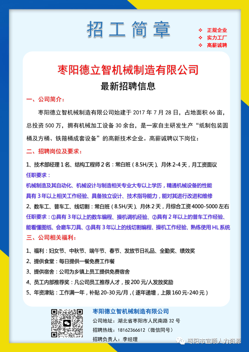 枣阳德立智机械制造有限公司招聘信息