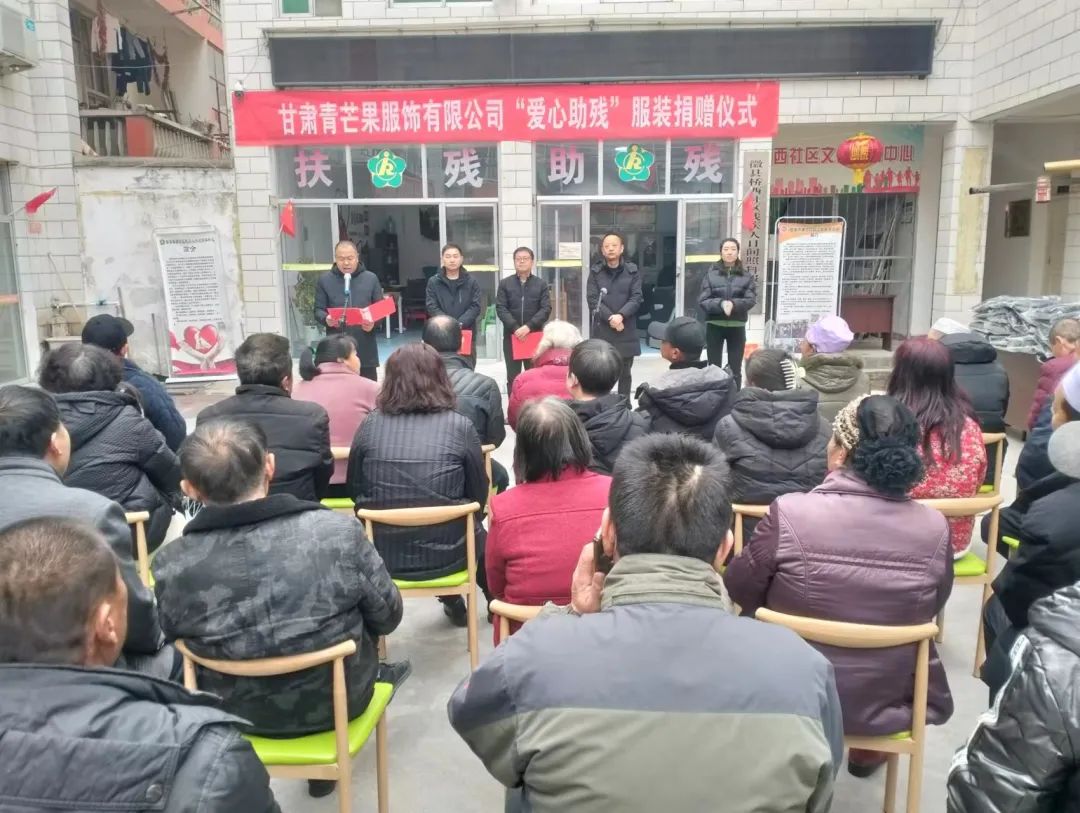 为了深入推进“结对关爱.爱心助残”行动的开展,让困难残疾群众度过一个温暖的冬天。1月18日,徽县残疾人联合会、甘肃青芒果服饰有限公司“爱心助残”服装捐赠仪式在徽县桥西社区残疾人日间照料服务中心隆重举行。县政府副县长王耀华、城关镇党委书记徐亮、甘肃青芒果服饰有限公司负责人、受捐赠残疾人代表参加活动。县残联理事长辛建民主持仪式。
