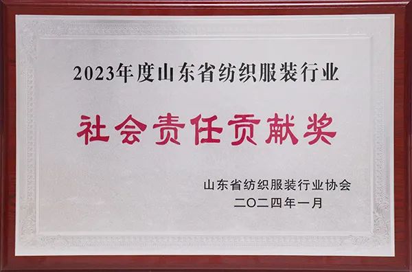 日前,山东省纺织服装行业协会在烟台召开山东省纺织服装行业协会五届六次理事会暨五届七次常务理事扩大会议,会议对2023年度山东省纺织行业先进单位和个人进行了表彰,我公司荣获“2023年度山东省纺织服装行业社会责任贡献奖”,公司刘淑云、刘高峰同志被授予“2023年度山东省纺织服装行业科技创新领军人物”称号。