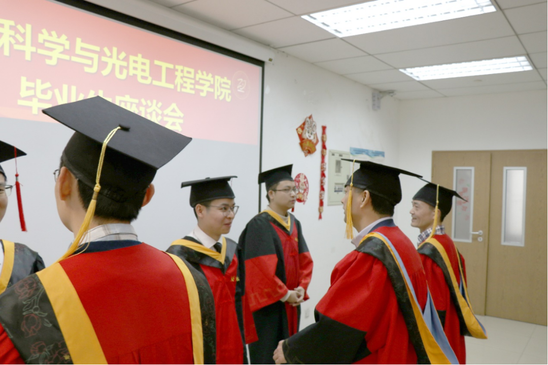 最后,学院领导依次为毕业生代表拨苏正冠,并同大家合影留念。座谈会在“一七一七、勇创第一”的口号和温馨热烈的氛围中圆满结束。