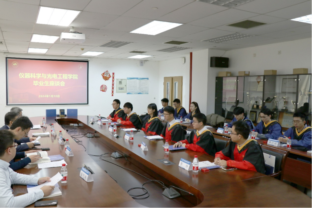 1月10日上午,仪器科学与光电工程学院2024届研究生毕业生座谈会在新主楼B707会议室召开。学院党委书记刘刚、院长徐立军、副院长曹章、分团委书记卢阳、毕业生辅导员张飞杨,以及15名毕业生代表出席本次座谈会。座谈会由分团委书记卢阳主持。