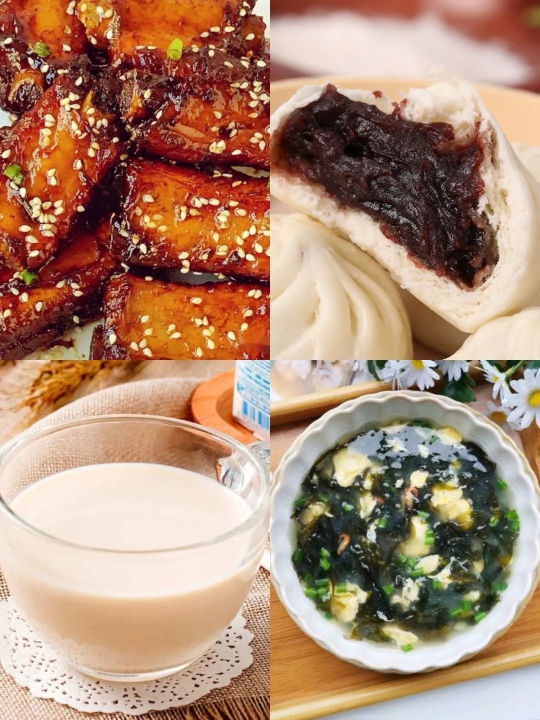 豆沙包、煎鸡蛋、鲜蔬鸡蛋汤