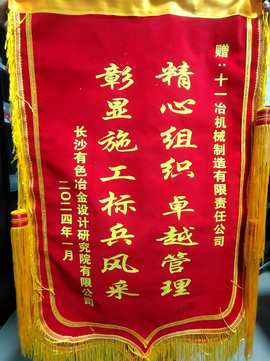 2024年1月12日,中金岭南项目相关负责人专程来到柳州,将两面分别绣有“同心奋进 收获美誉”和“精心组织 卓越管理 彰显施工标兵风采”的锦旗致以机械制造公司,对机械制造公司在项目建设过程中的专业素养及务实作风表示充分肯定和高度赞誉。