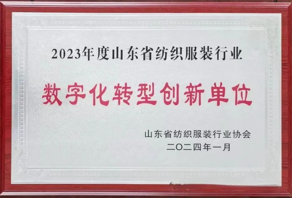 1 月16日,山东省纺织服装行业协会在烟台市召开了山东省纺织服装行业协会五届六次理事会暨五届七次常务理事扩大会议,会上发布了2023 年度山东省纺织行业先进单位和个人,岱银集团在此会议上荣获2023年度山东省纺织服装行业“社会责任贡献奖”和“数字化转型创新单位”两项荣誉;集团副总经理李广军荣获2023年度山东省纺织服装行业“突出贡献人物”称号;研究院副院长谢松才荣获2023年度山东省纺织服装行业“科技创新领军人物”称号;云诺设计研发部经理崔宁宁获2023年度山东省纺织服装行业“时尚设计先锋人物”称号。