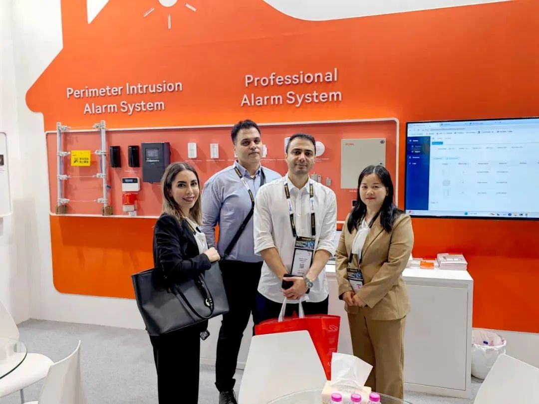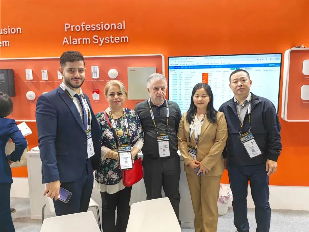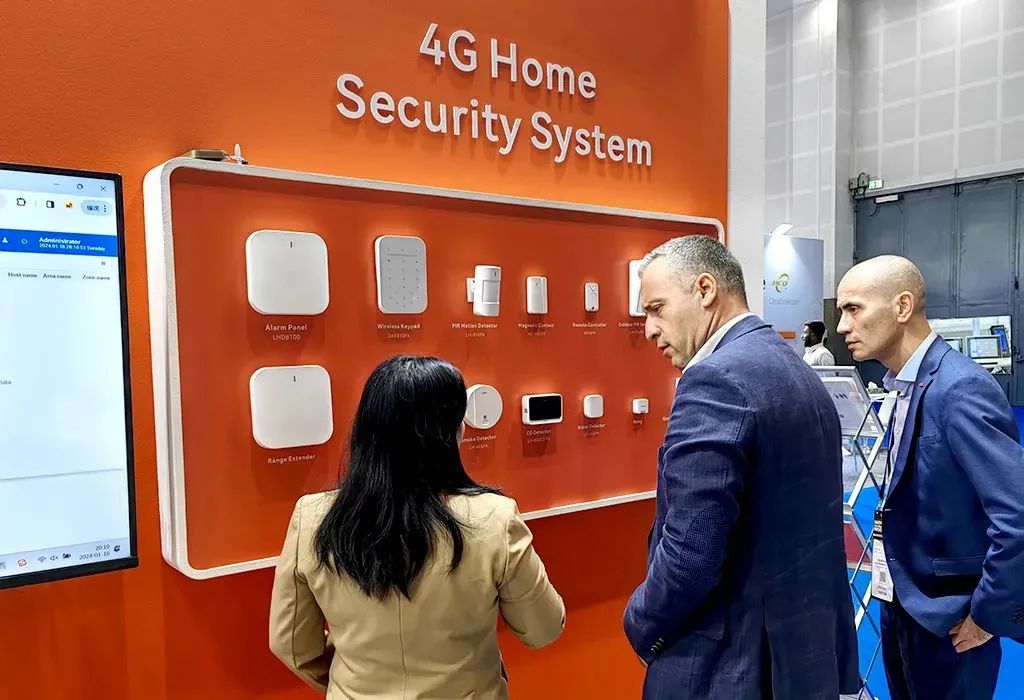 豪恩展台在迪拜国际会展中心SA-L41展位,现场展示了4G家庭安全系统、智能家居传感器系统、专业安防报警系统、周界入侵报警系统、门禁控制系统等五大系统。