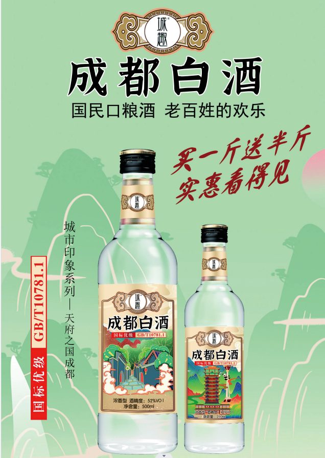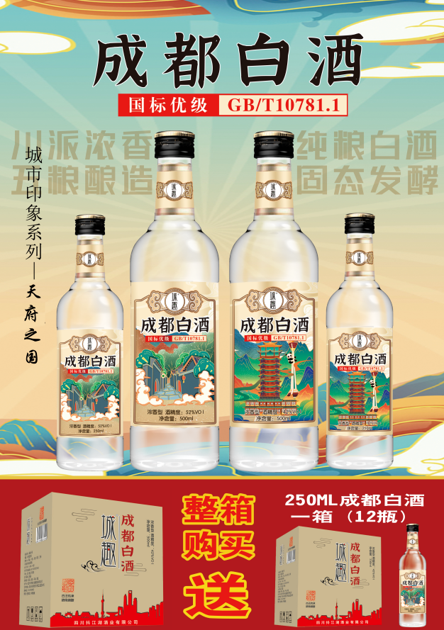 【产品介绍】成都白酒/川派浓香,五粮酿造,固态发酵,国标优级酒,绵柔经典,入口柔顺,买一斤送半斤!城趣-中国城市文化酒系列