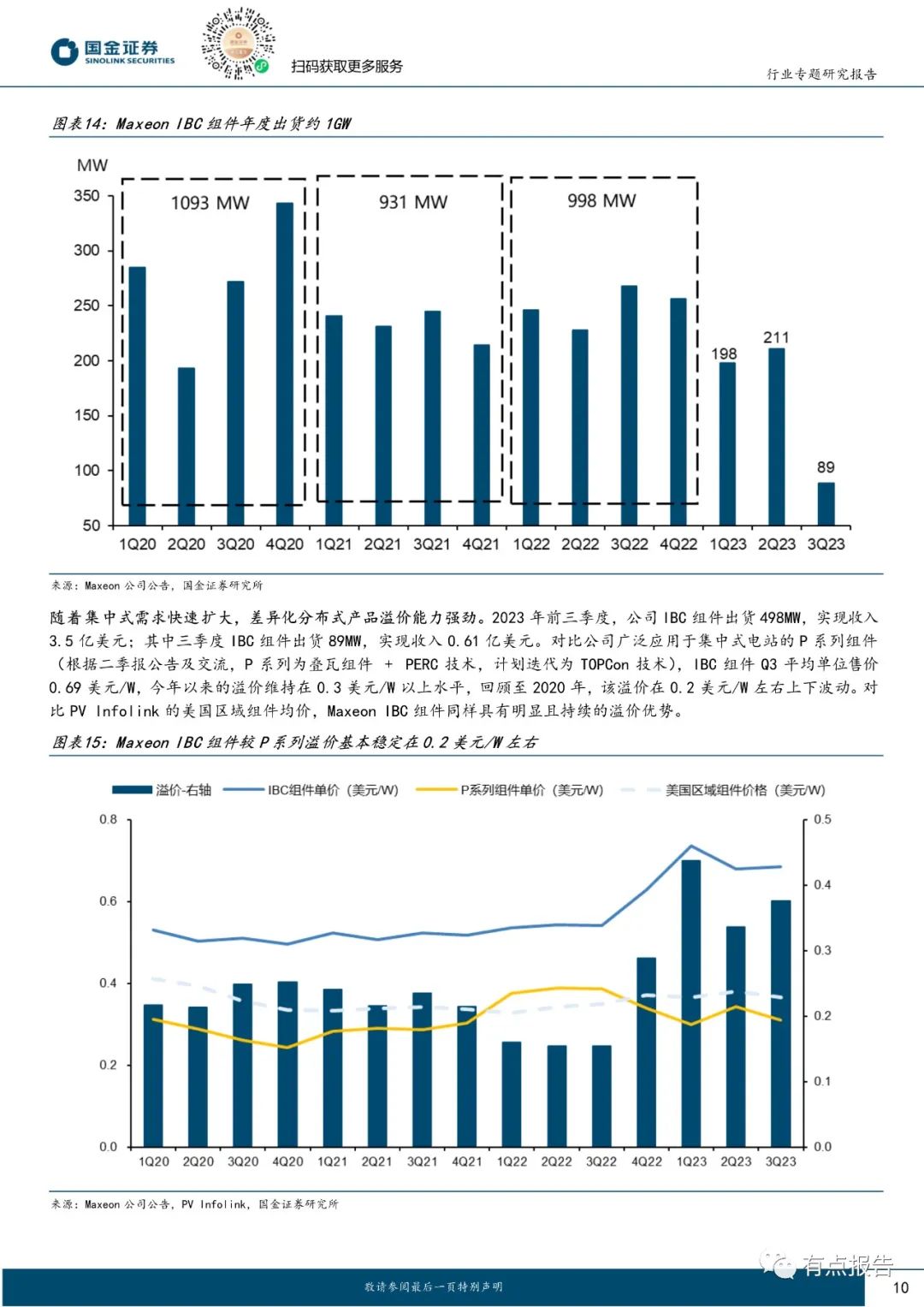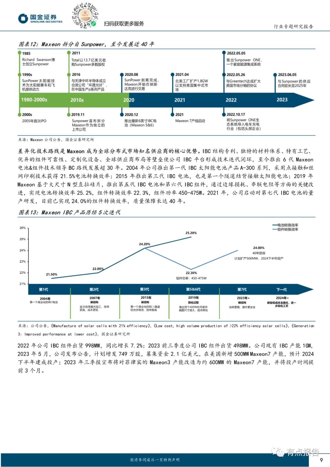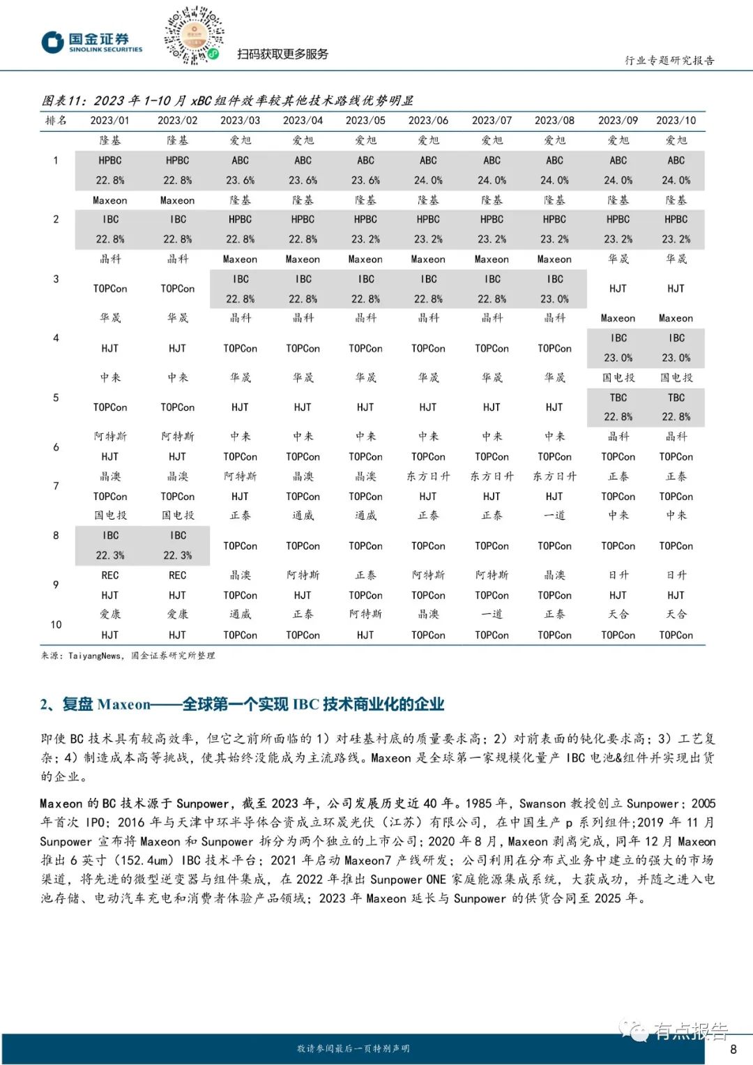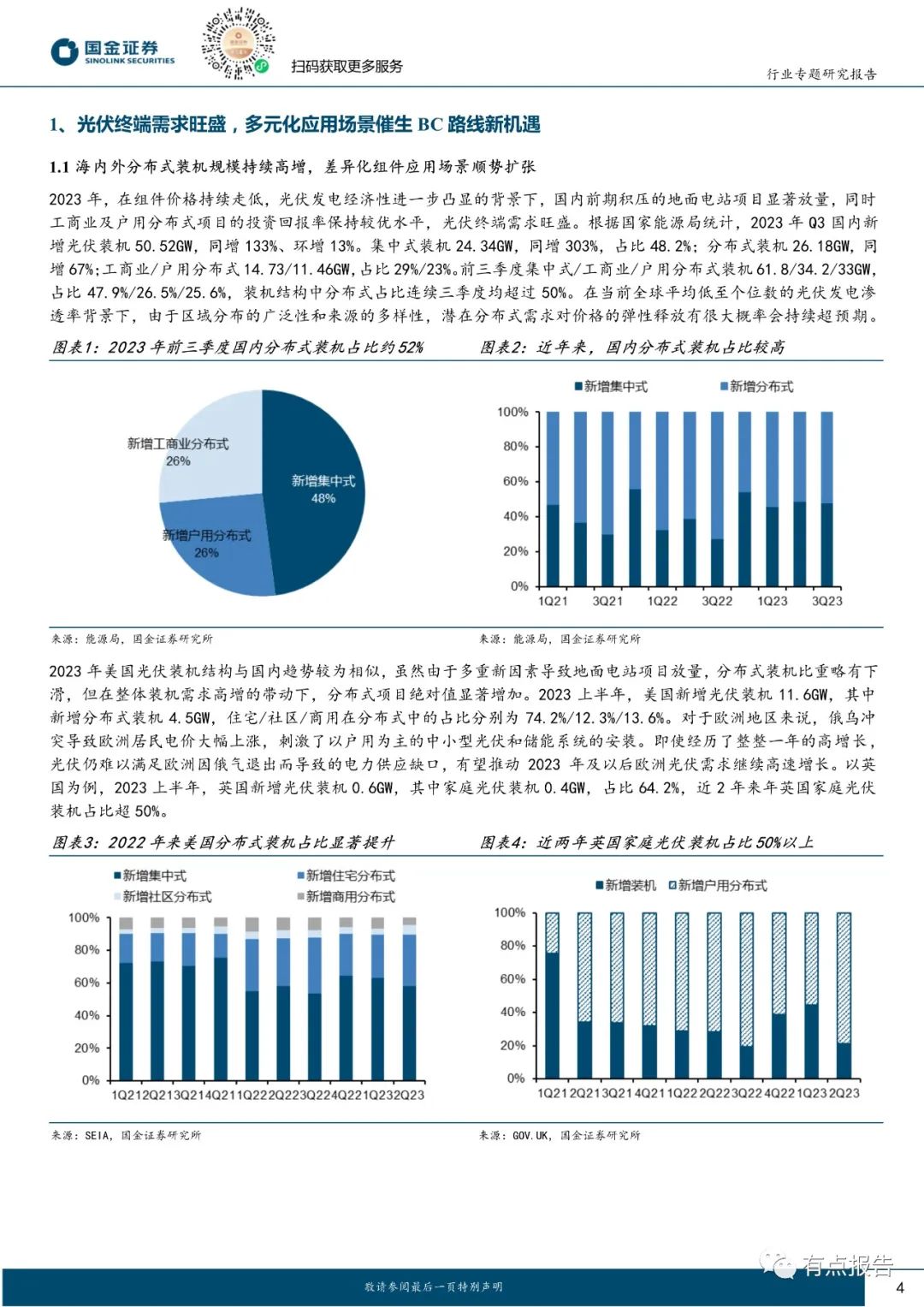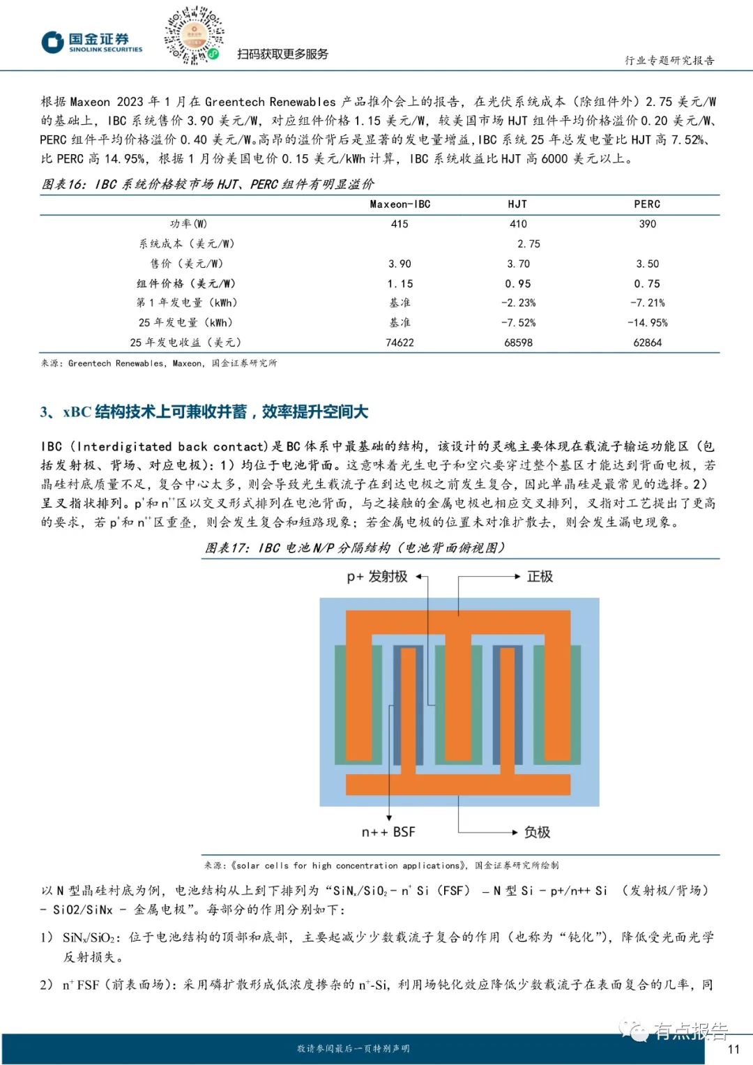 从观赏性的角度来说,BC 结构组件正面无栅线遮挡,外观上可以兼顾高颜值,更加符合多元化建筑场景的应用,因此深受分布式市场的喜爱;从工艺兼容性的角度来说,BC 工艺为兼收并蓄的富有延展性的工艺,可以与 TOPCon、HJT 工艺相结合,在正面充分利用的前提下进一步优化钝化结构,持续做到电池转换效率的提升。