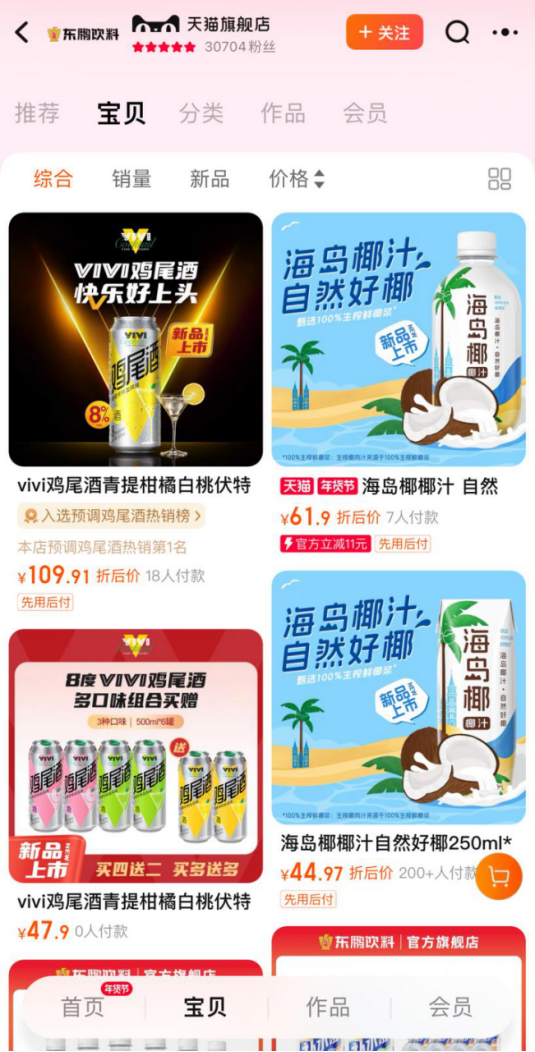 只是对赶了个晚集的东鹏饮料来说,想要成为第二支柱的挑战也相当之大。例如近期刚刚推出的VIVI鸡尾酒,天猫旗舰店上的销量只有寥寥几十单,和RIO以万为单位的销量相去甚远。