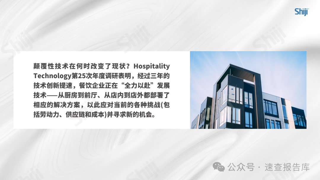 颠覆性技术在何时改变了现状? HospitalityTechnology第25次年度调研表明,经过三年的技术创新提速,餐饮企业正在“全力以赴”发展技术-从厨房到前厅、从店内到店外都部署了相应的解决方案,以此应对当前的各种挑战(包括劳动力、供应链和成本)并寻求新的机会。