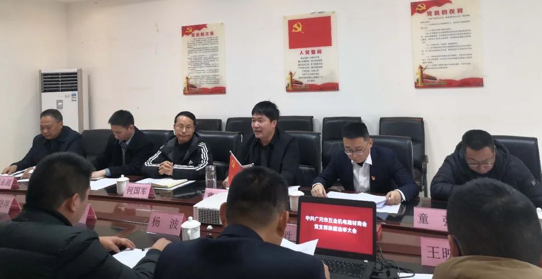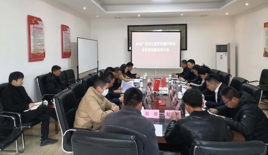 1月22日下午,广元市五金机电建材商会党支部换届大会在广元万贯博览中心会议室举行。市工商联副主席、直属商协会联合党委书记何国军,市工商联直属商协会联合党委副书记徐飞到会指导。