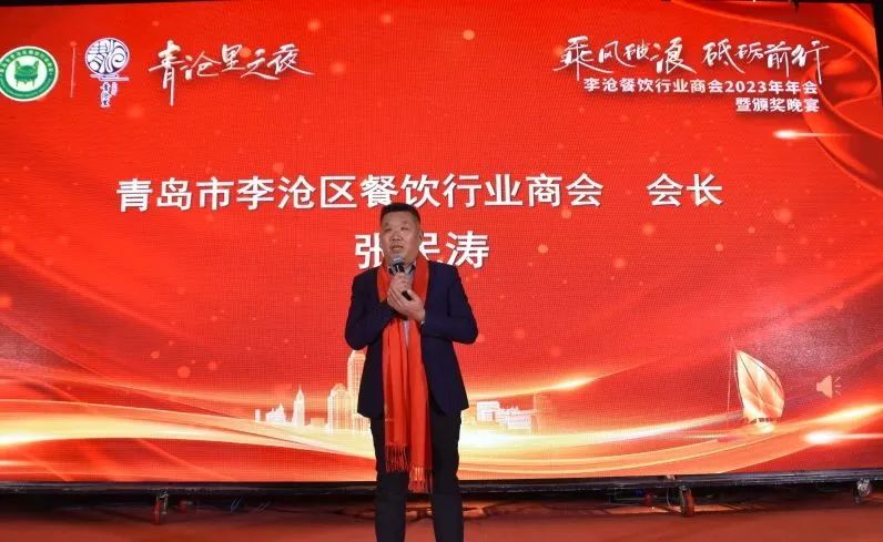 1月23日下午,李沧区餐饮行业商会举办三届五次会长会议暨主题教育专题组织生活会暨2023年“青沧里之夜”年会。李沧区政协副主席、区工商联主席吕伟烈,李沧区委统战部副部长、区工商联党组书记韩锡涛,李沧区商务局局长李大鹏,李沧区文旅局党组书记周泽鹏,李沧区政法委副书记王学青,李沧区市场监管局局长周利砚,李沧区交警大队大队长安明,李沧区餐饮行业商会顾问、青岛市餐饮行业协会会长李东深,李沧区餐饮行业商会会长张民涛,青岛市各区餐饮协会会长,各企业家代表200余人参加了此次活动。