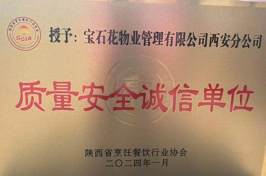 本次会议以“承前启后,匠心传承,继往开来,聚力繁荣”为主题,陕西省商务厅、省工业和信息化厅、省人力资源社会保障厅、省总工会、省财贸金融轻工工会、省市场监督管理局、省农业农村厅、省乡村振兴局等300余人参加了盛会。宝石花物业长庆油田地区公司荣获“副会长单位”“质量安全诚信单位”,公司副总裁、地区公司总经理陈军荣获“陕西餐饮领军人物”,湖滨花园项目负责人张锋荣获“陕西餐饮烹饪行业突出贡献奖”,培训中心项目王雅静荣获“陕西餐饮烹饪行业突出贡献奖”。