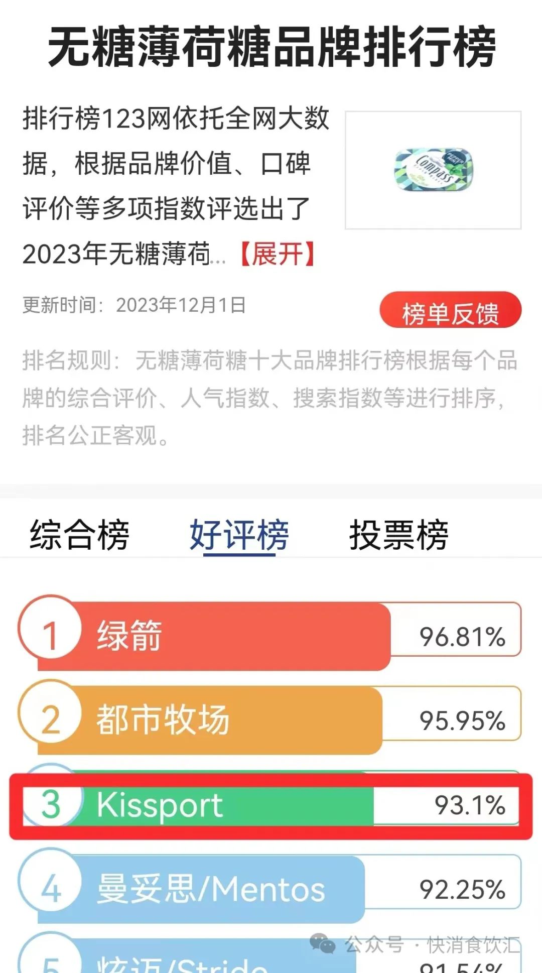 1、中国无糖薄荷糖十大品牌好评榜第3位。