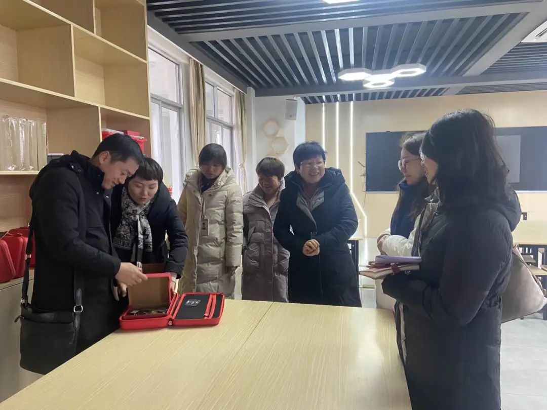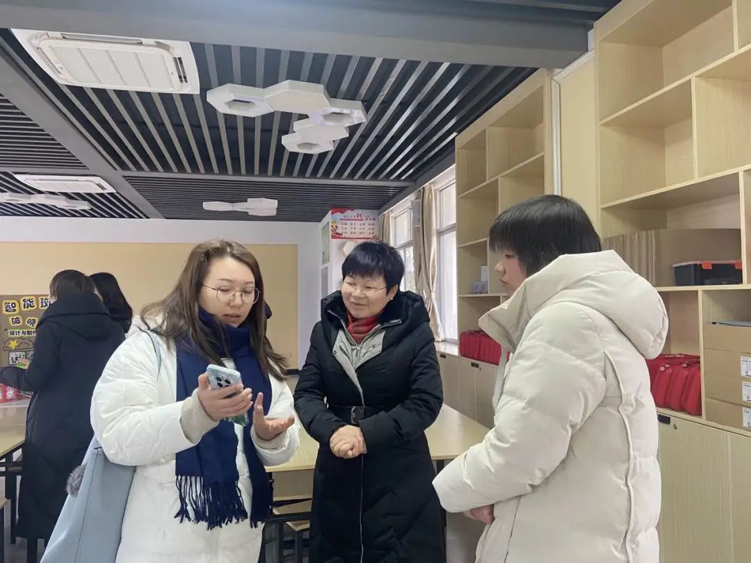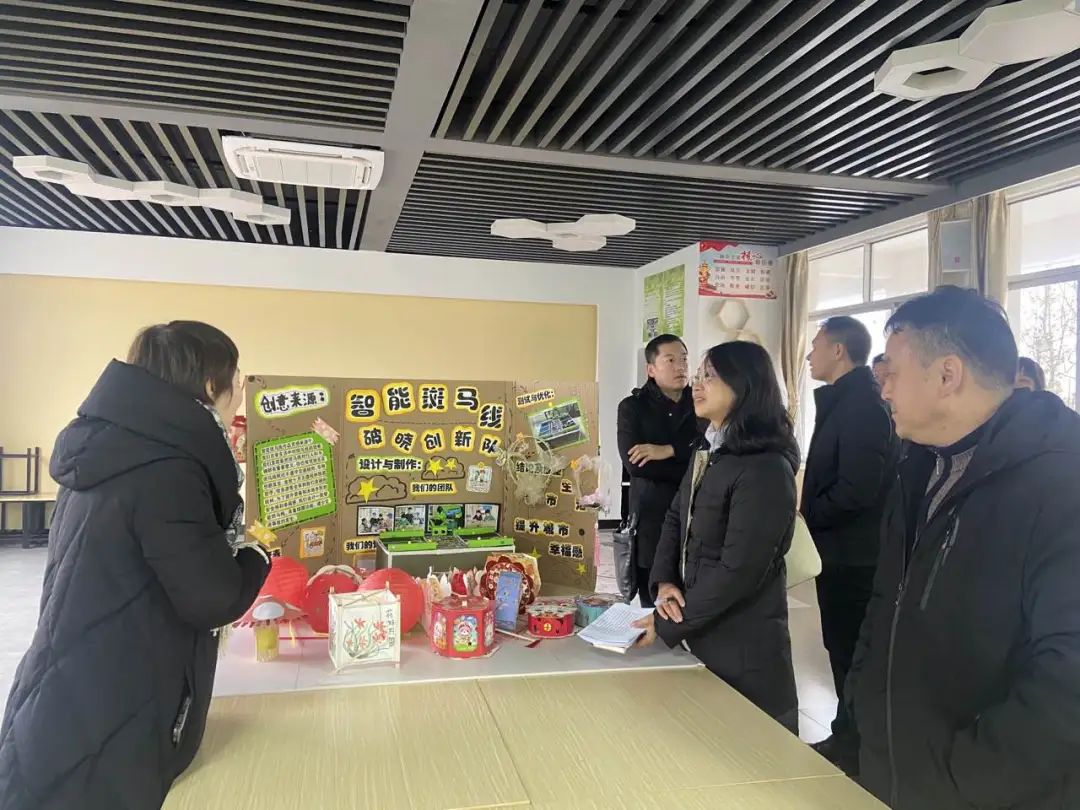 评估组来到了创客室进行实地考察,创客室负责老师向评估组展示学生创客活动的部分成果,评估组一行对学校的创客环境、丰富的科普活动和教育形式给予了肯定。
