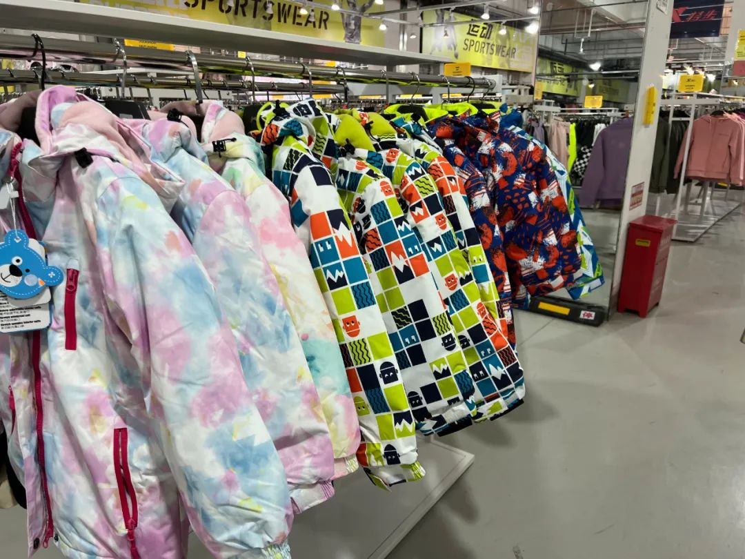 羊毛衫99、加厚卫裤100一条、童装3.5折,真是挑的眼都花了~冬天大家爱滑雪,这还有雪服区域,五颜六色的颜值还不错,大家可以来试穿一下。