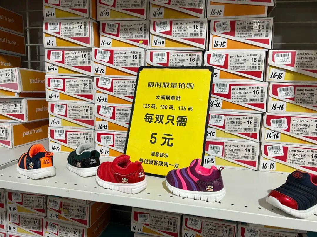 三层还有日化百货、母婴专区、鞋区、运动装备…每个区域都有明确的品牌和价格,自助逛街超方便。