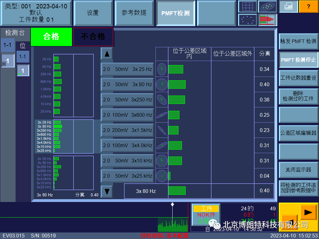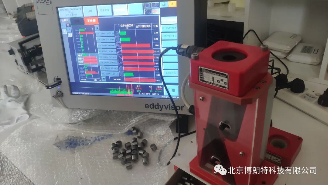 检测采用了ibg eddyvisor DSC型主机,25mm标准通过式线圈29201-25及通用分选装置进行试验,采用PMFT(Preventive Multi-Frequency Testing )预多频涡流检测技术,对用户提供样品进行分选检测。