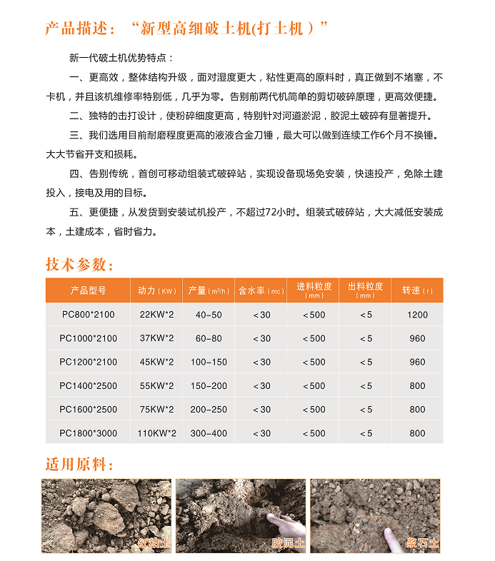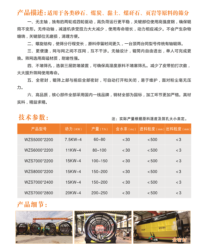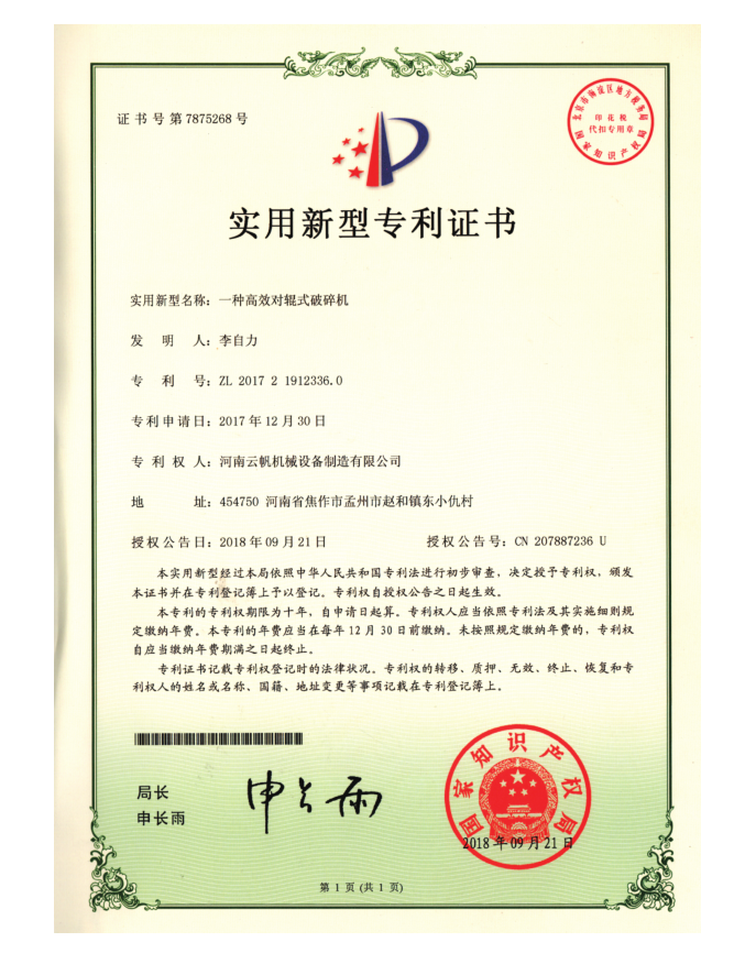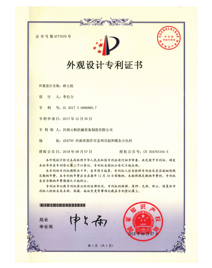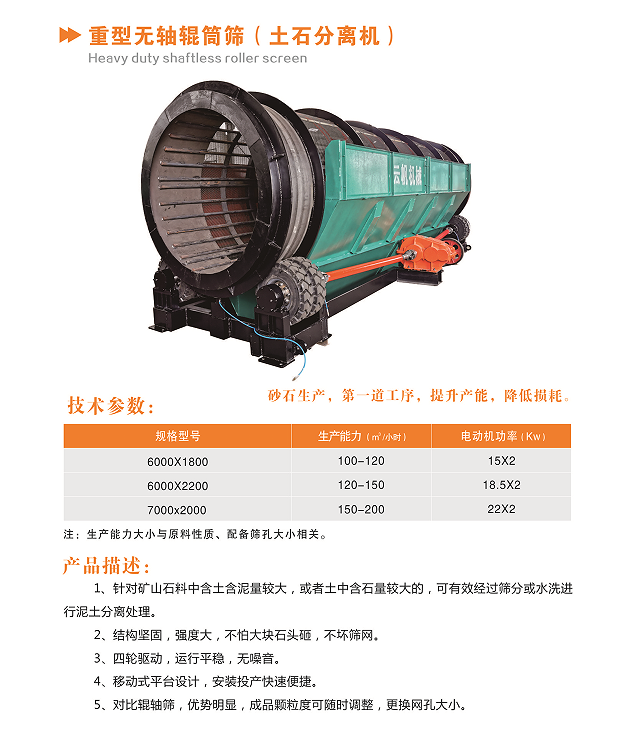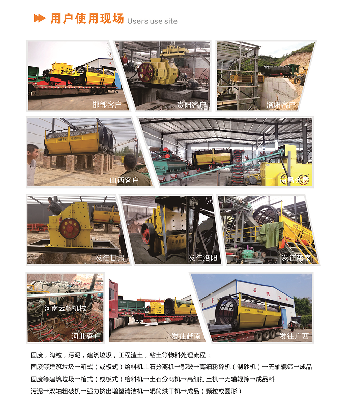 公司自主知识产权,专利产品有,中国第一台自主研发无轴螺旋辊筒筛,中国第一台自主研发的新型高细破土机(打土机、粉混机),煤矸石页岩高细粉碎机,双轴破碎机,可逆式节能高效粉碎机,重型无轴辊筛(土石分离机),强力对辊机,板式给料机,箱式给料机,推板式给料机等,多种型号的全套破碎和筛分设备,可满足日产量50-200万块标砖隧道窑制砖企业原料处理需求。多年来,受到广大制砖企业和砂石客户认可与支持。