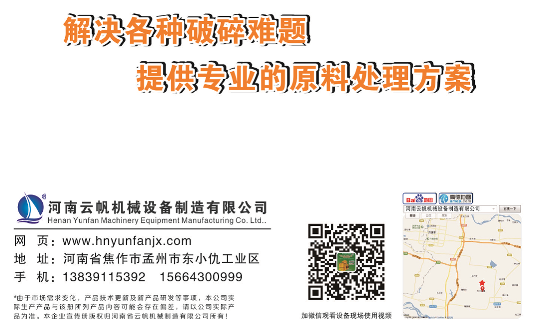 河南云帆机械设备制造有限公司,位于河南省焦作市孟州,著名诗人“韩愈”的故乡,公司有着20多年的机械加工制造能力,现已成为行业内较专业的设备供应商,提供全套固废、污泥、粘土、页岩、煤矸石、建筑垃圾等原料的破碎和筛分设备,一体化解决方案。