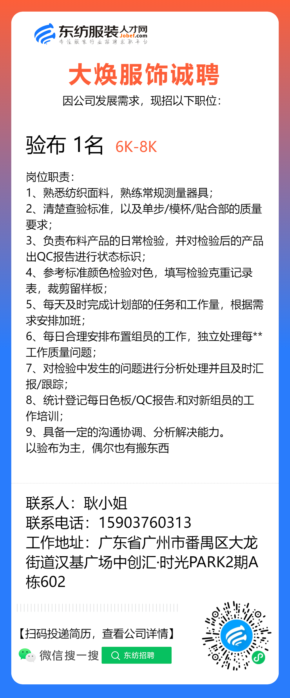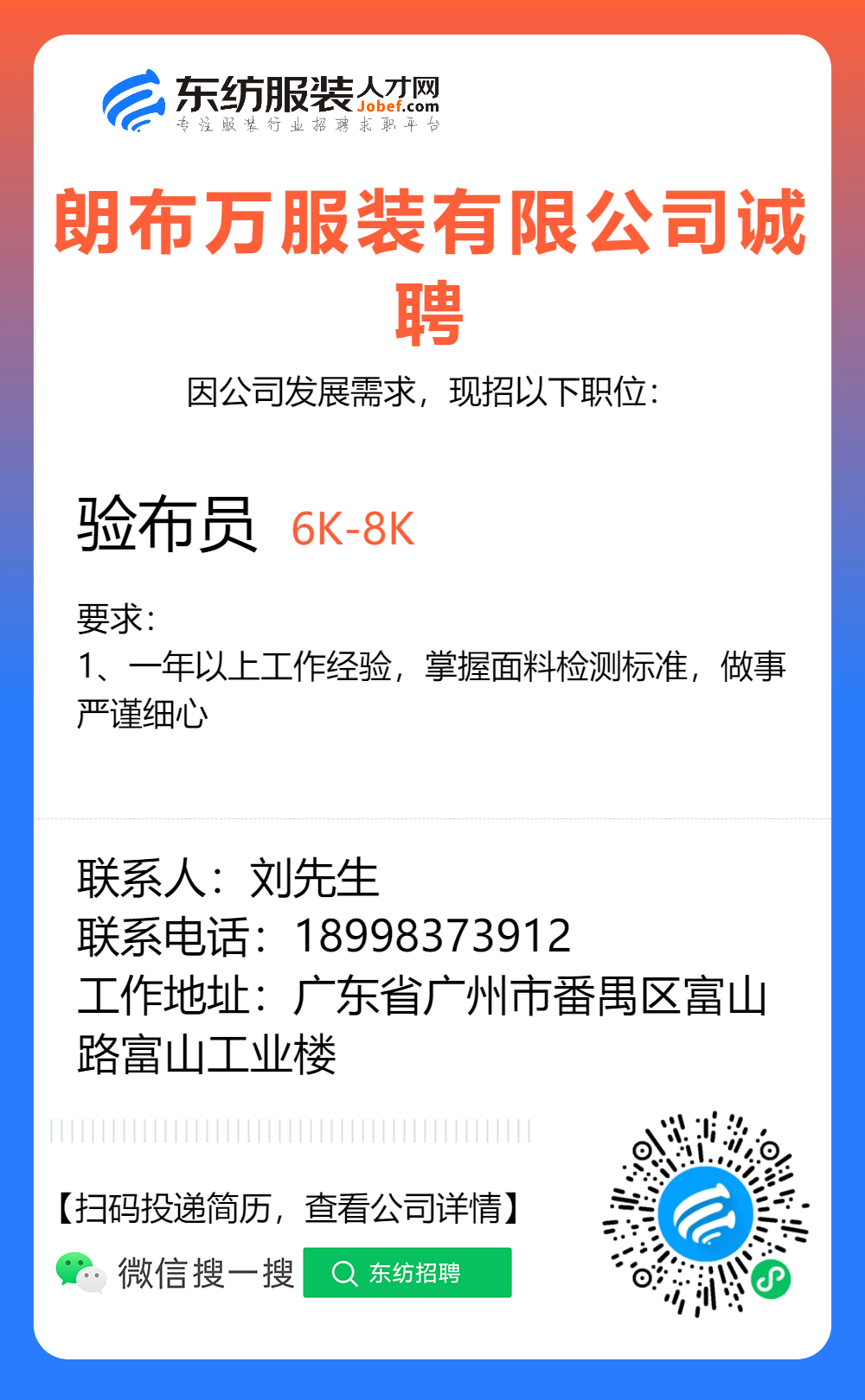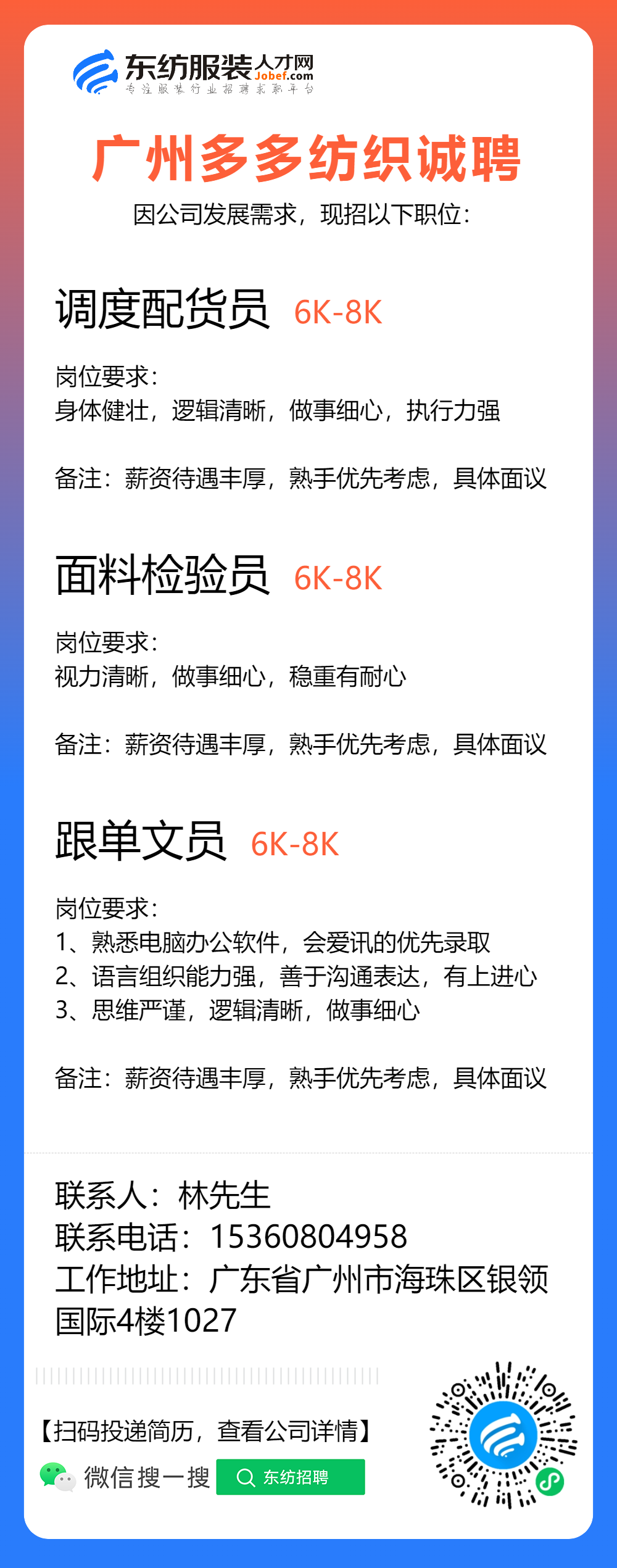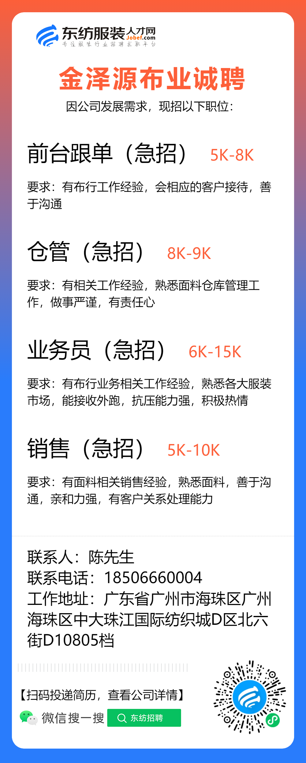 服装招聘·布行类丨1. 25号,验布员、布行销售、质检员……