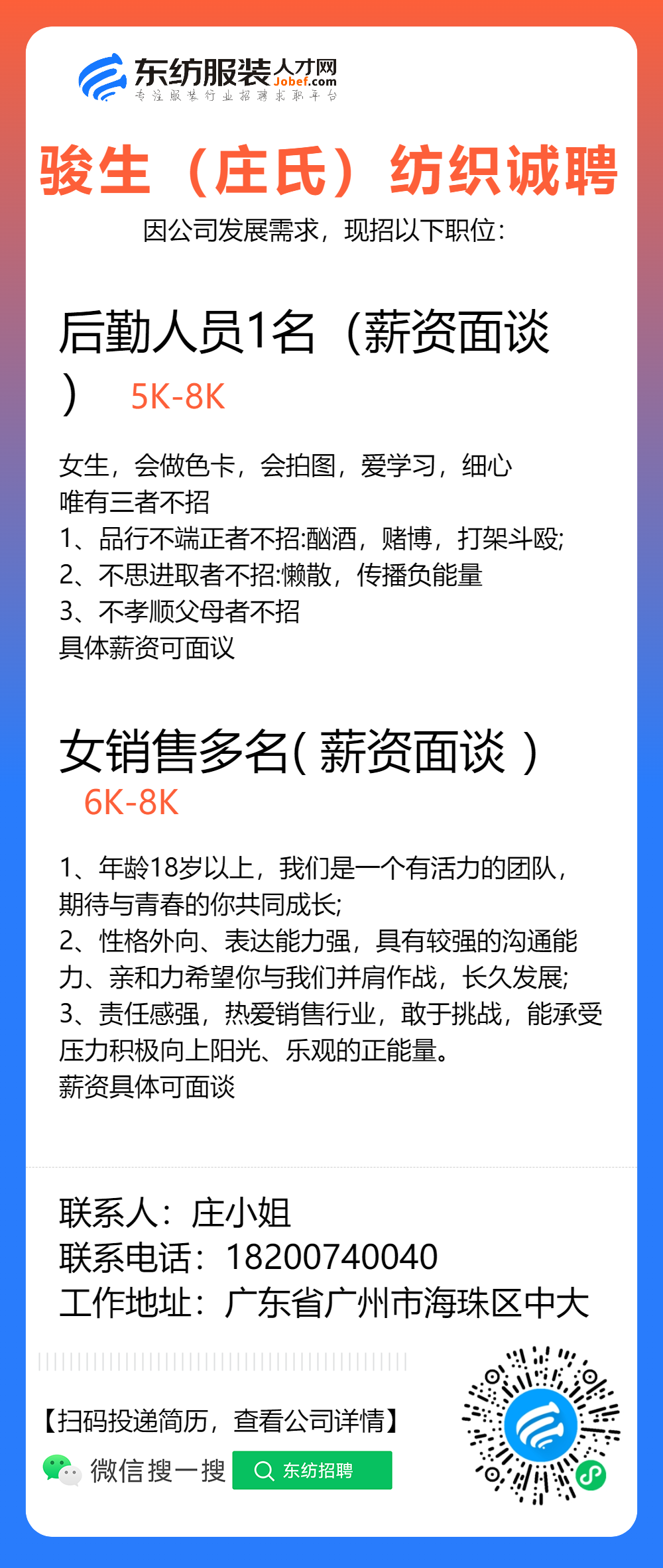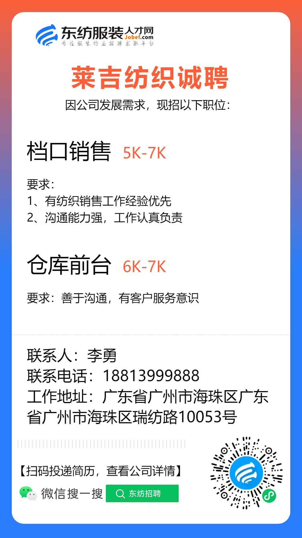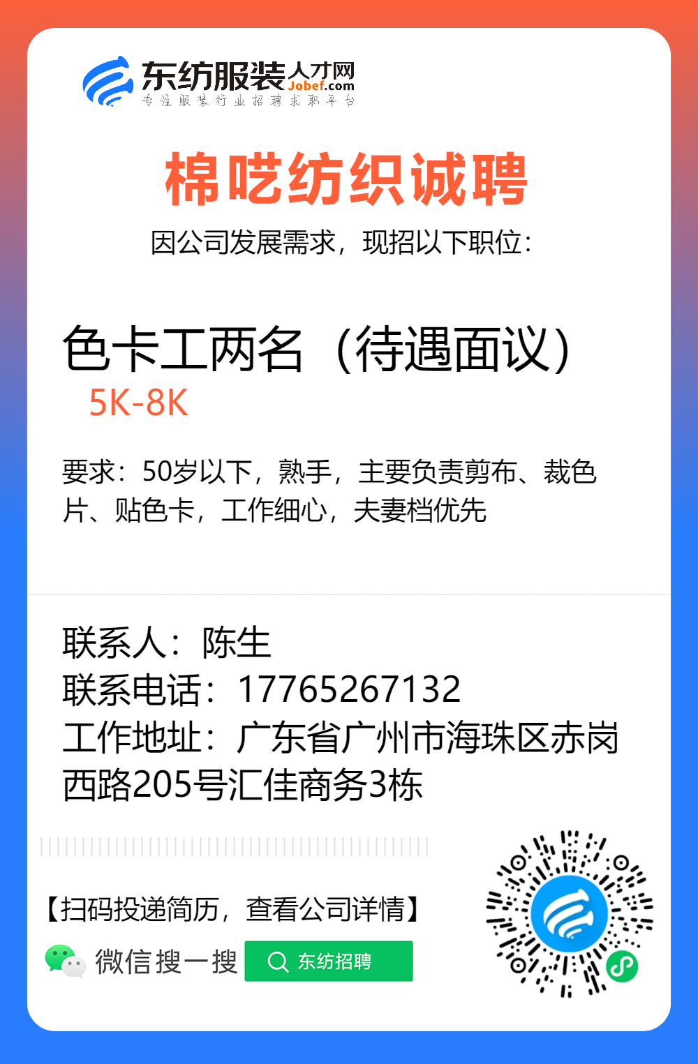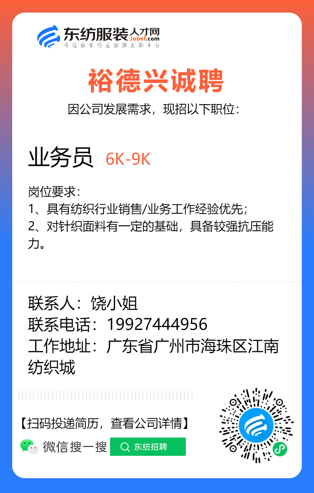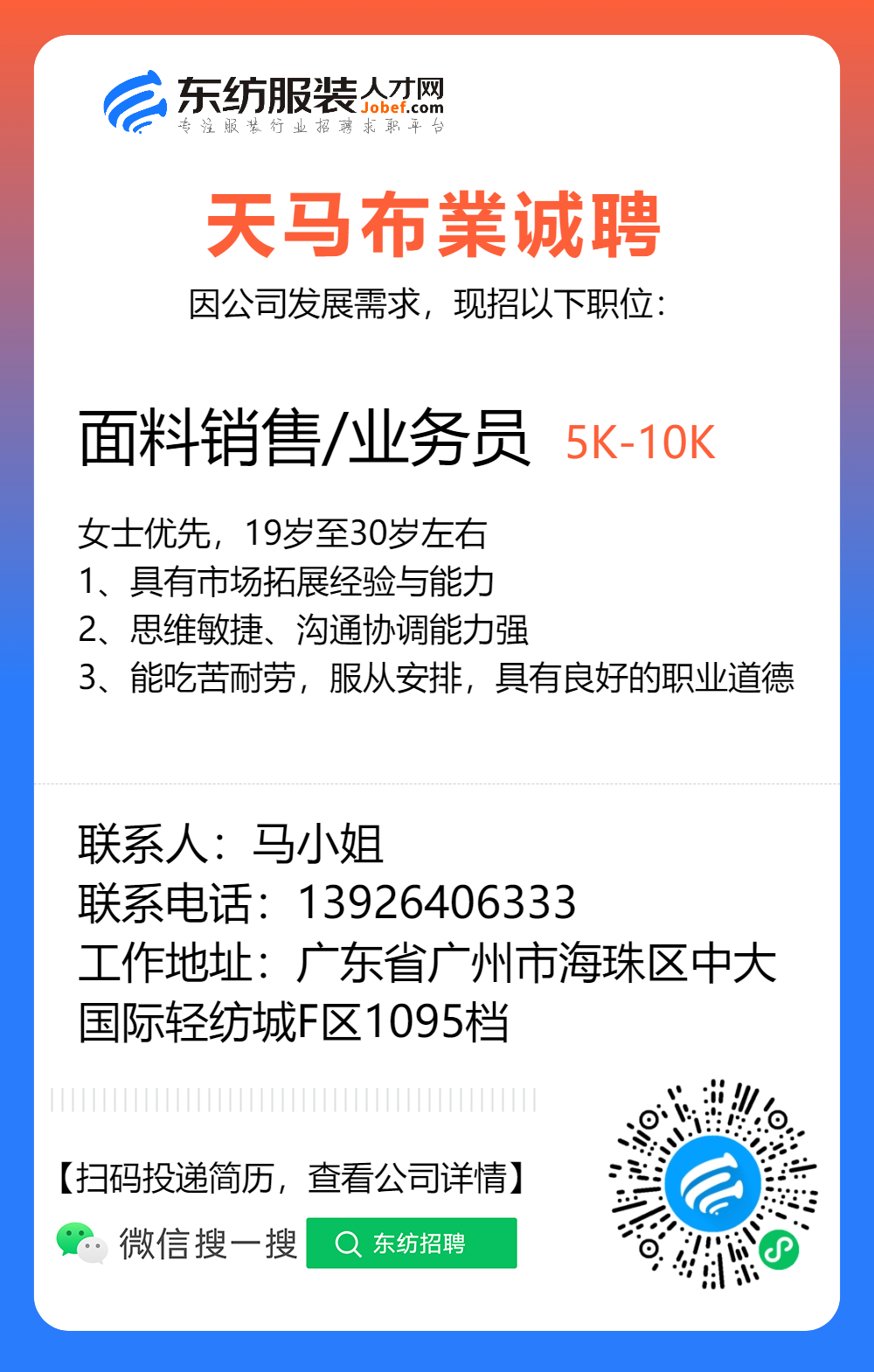 服装招聘·布行类丨1. 25号,验布员、布行销售、质检员……