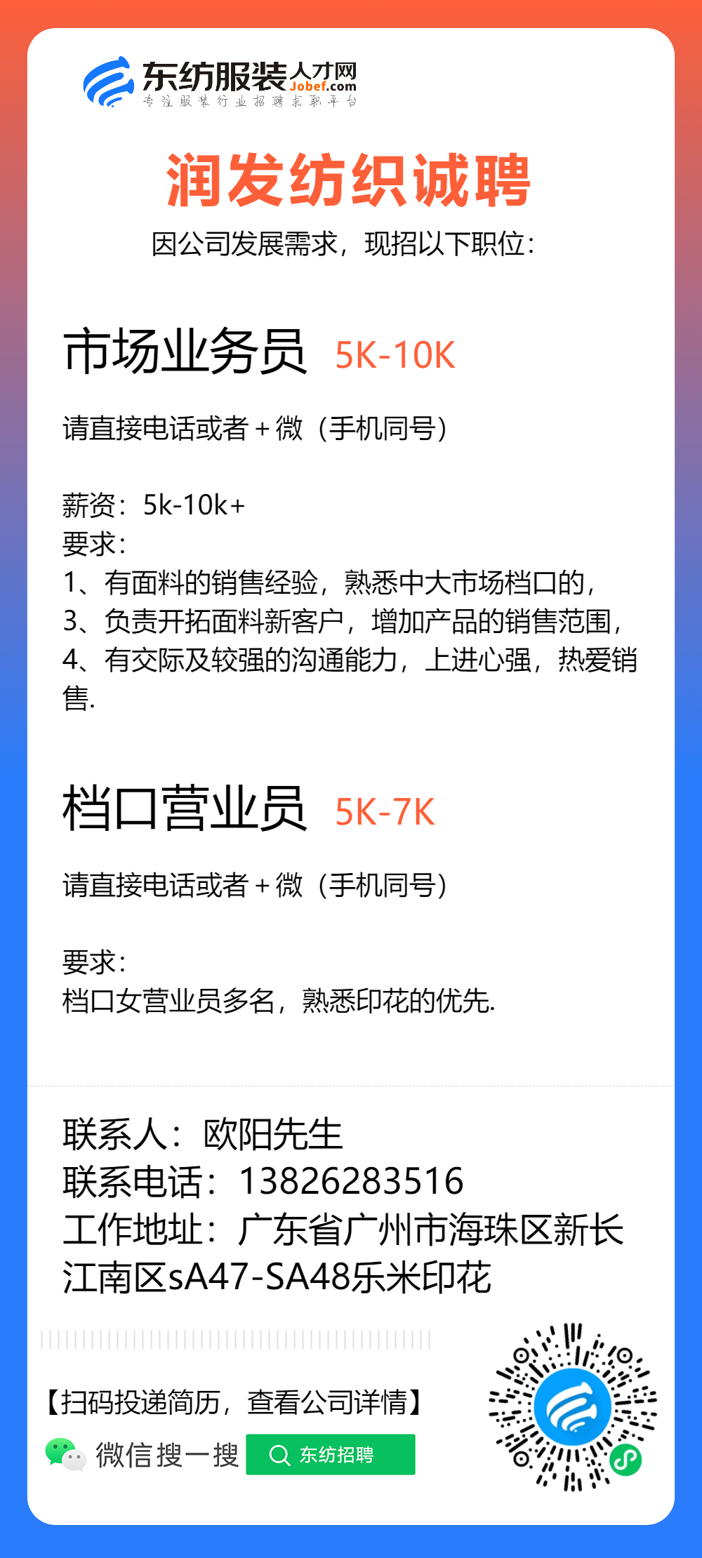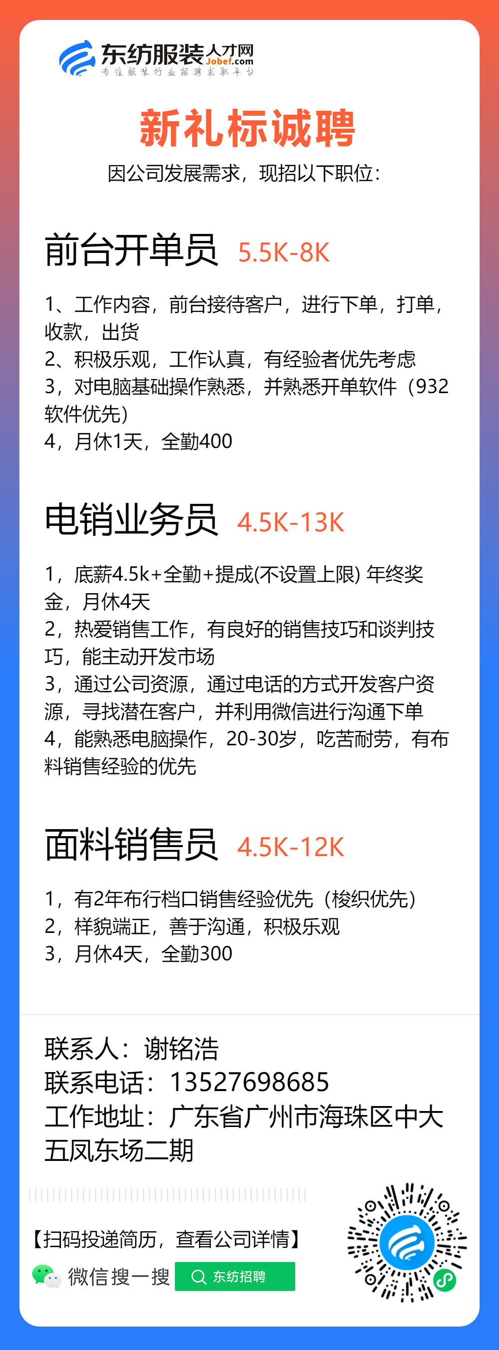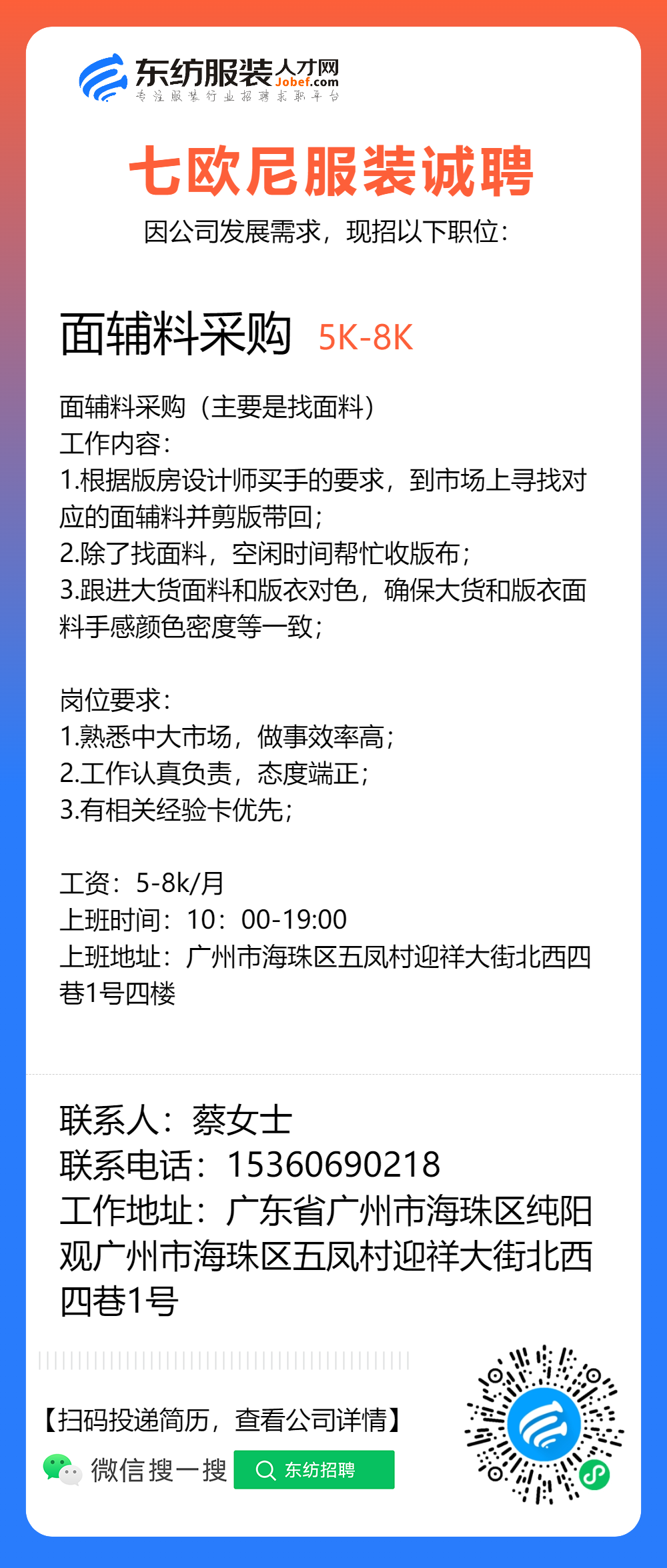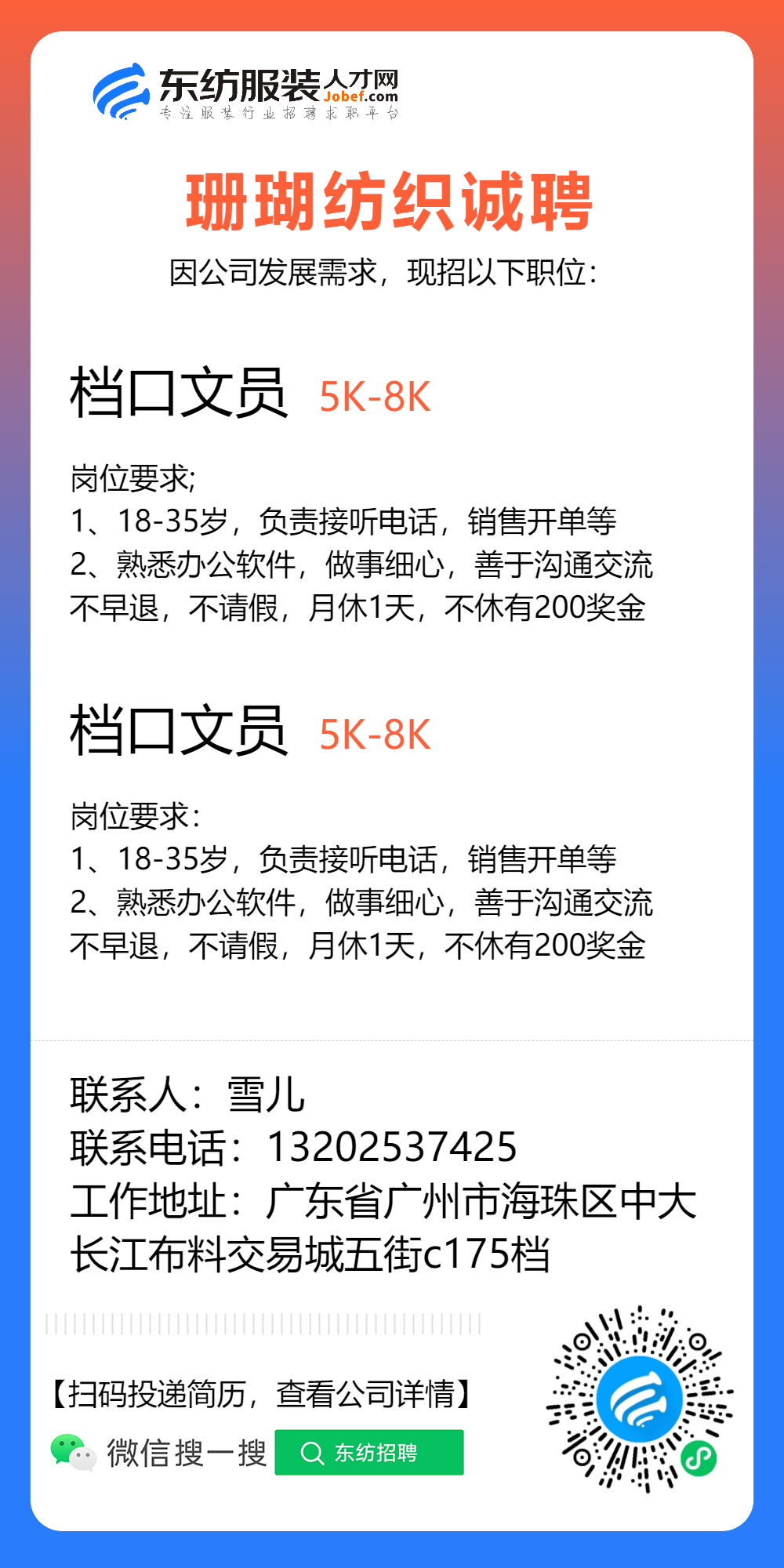 服装招聘·布行类丨1. 25号,验布员、布行销售、质检员……