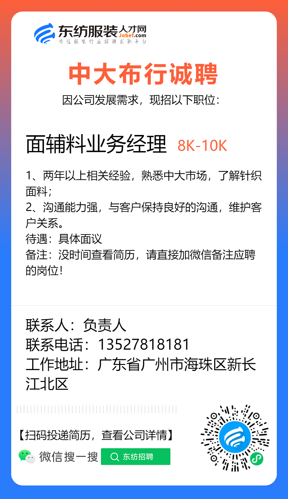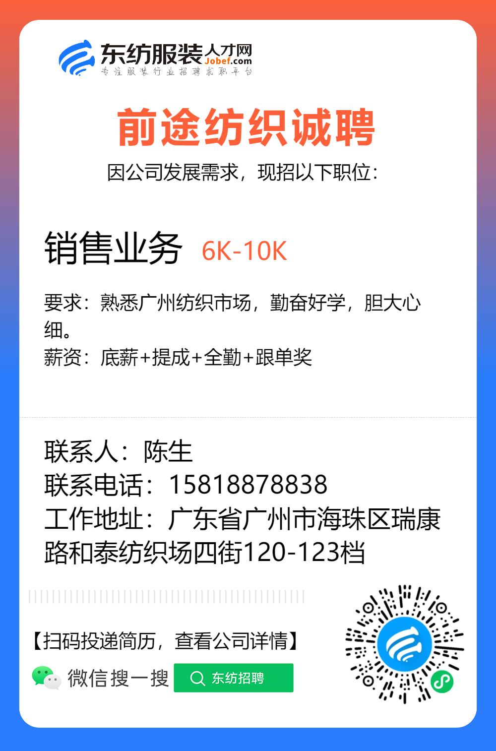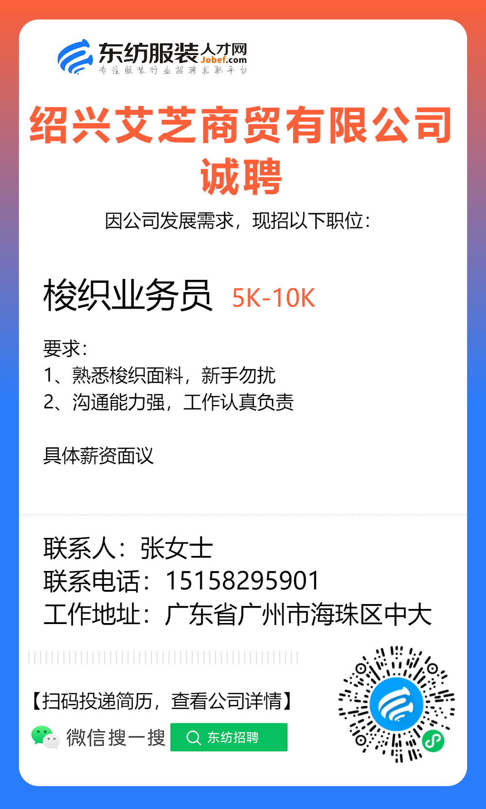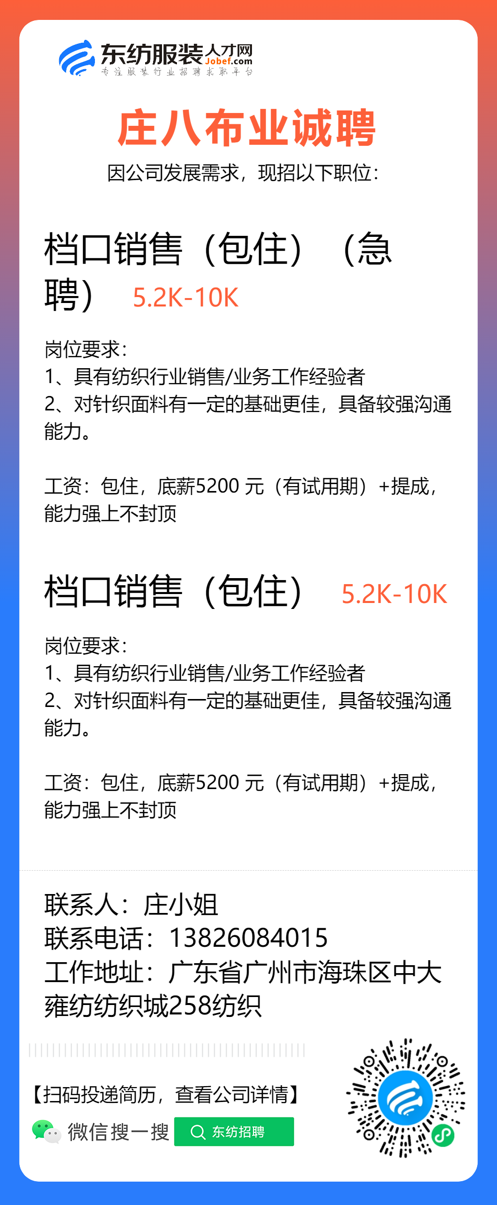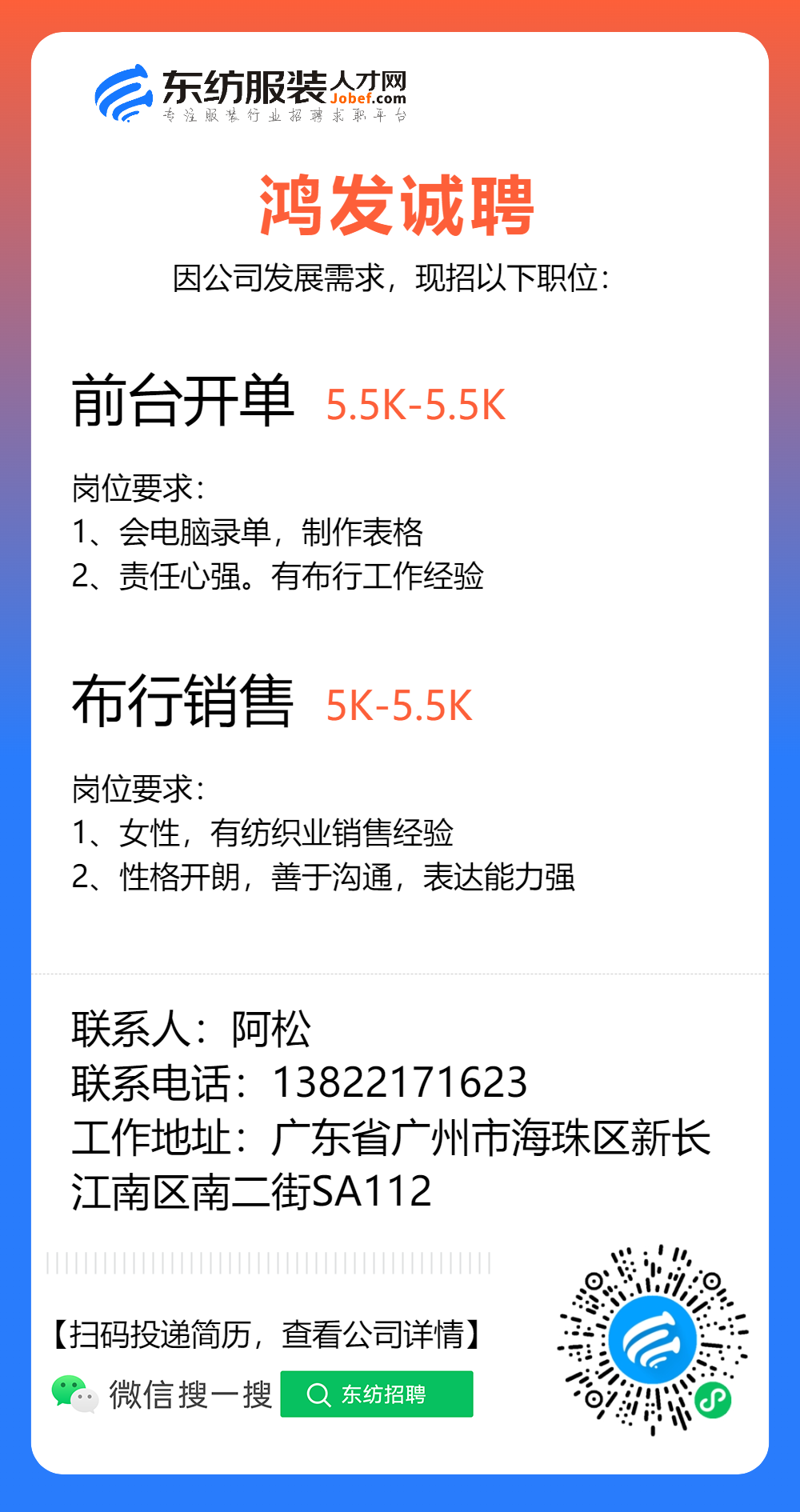 服装招聘·布行类丨1. 25号,验布员、布行销售、质检员……
